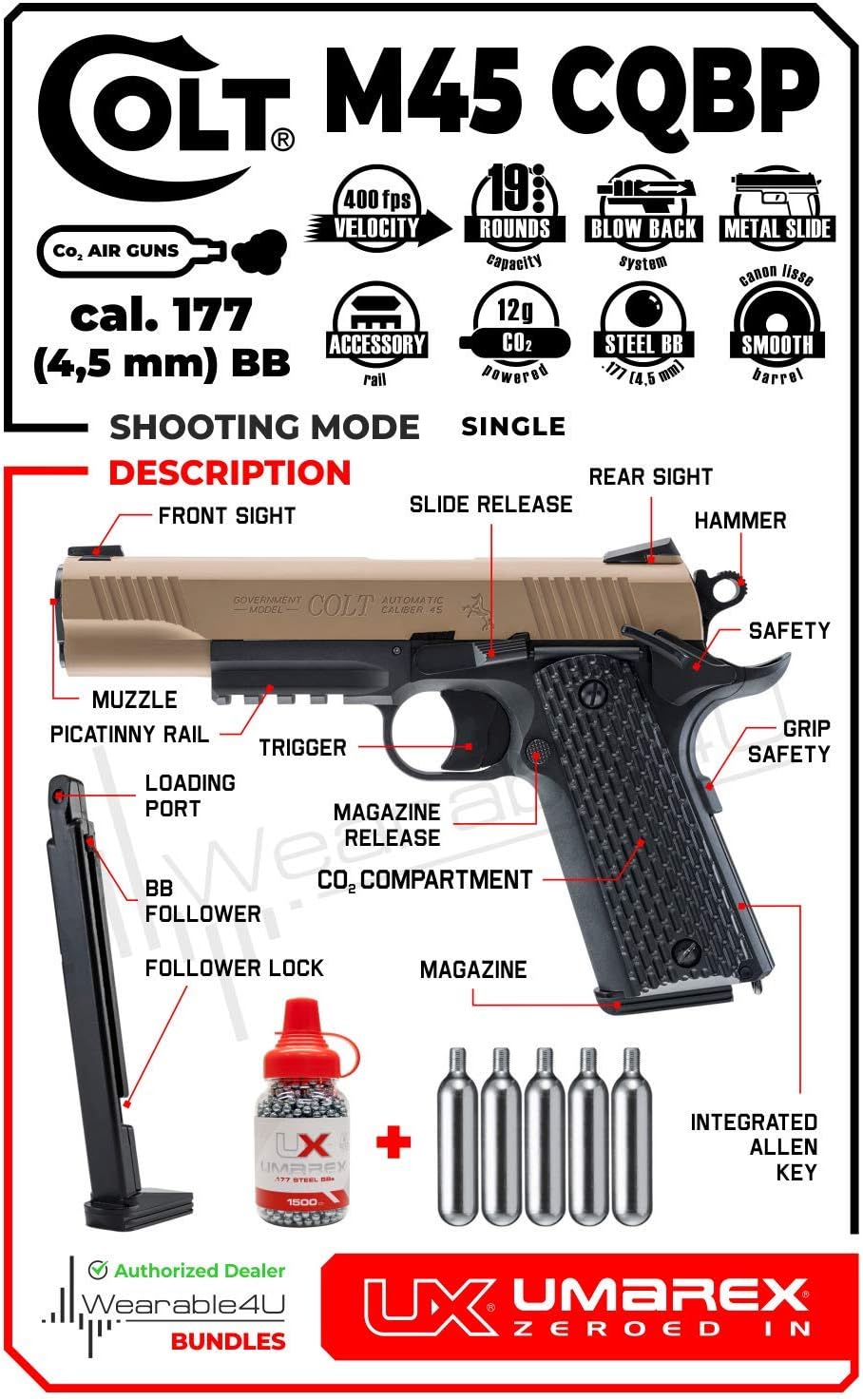 | Color | M45 CQBP+CO2+1500 BBs |