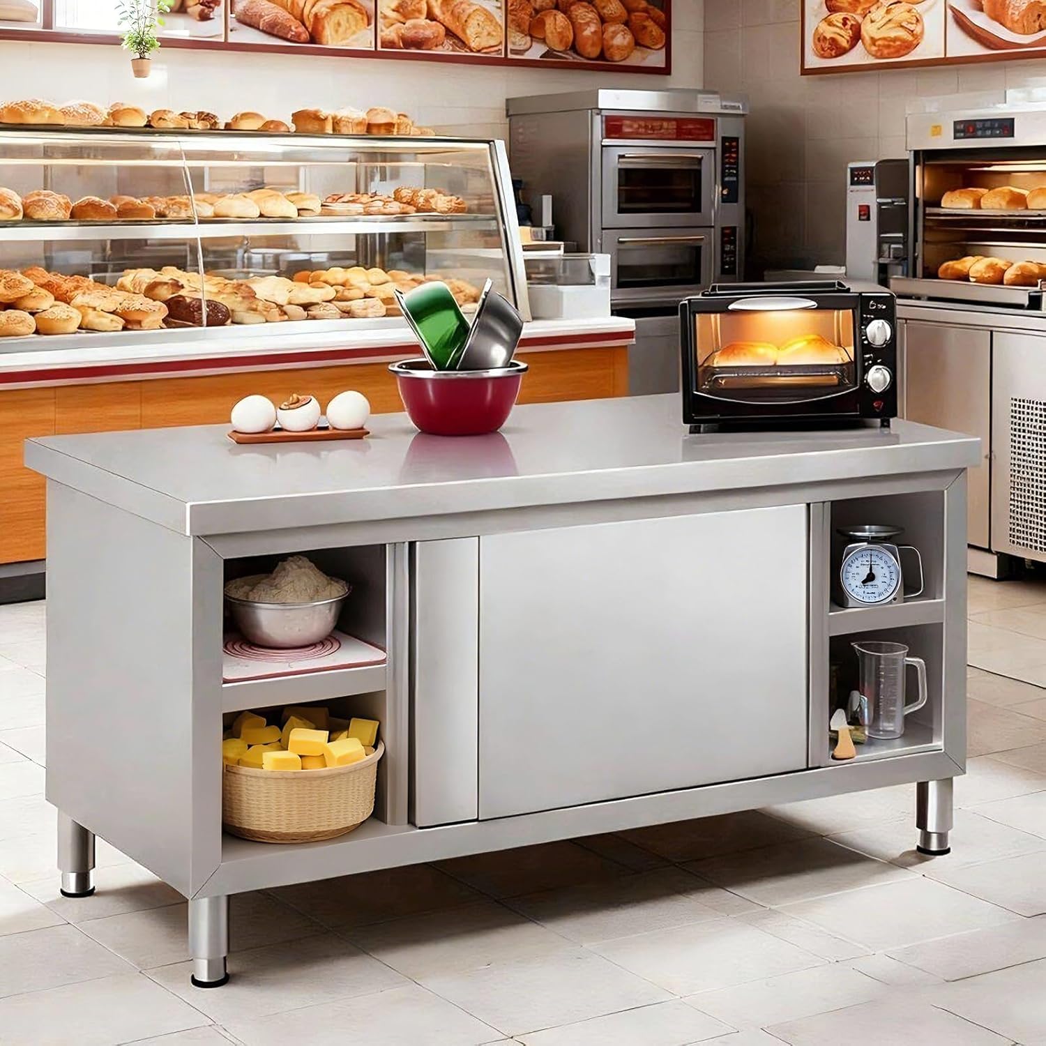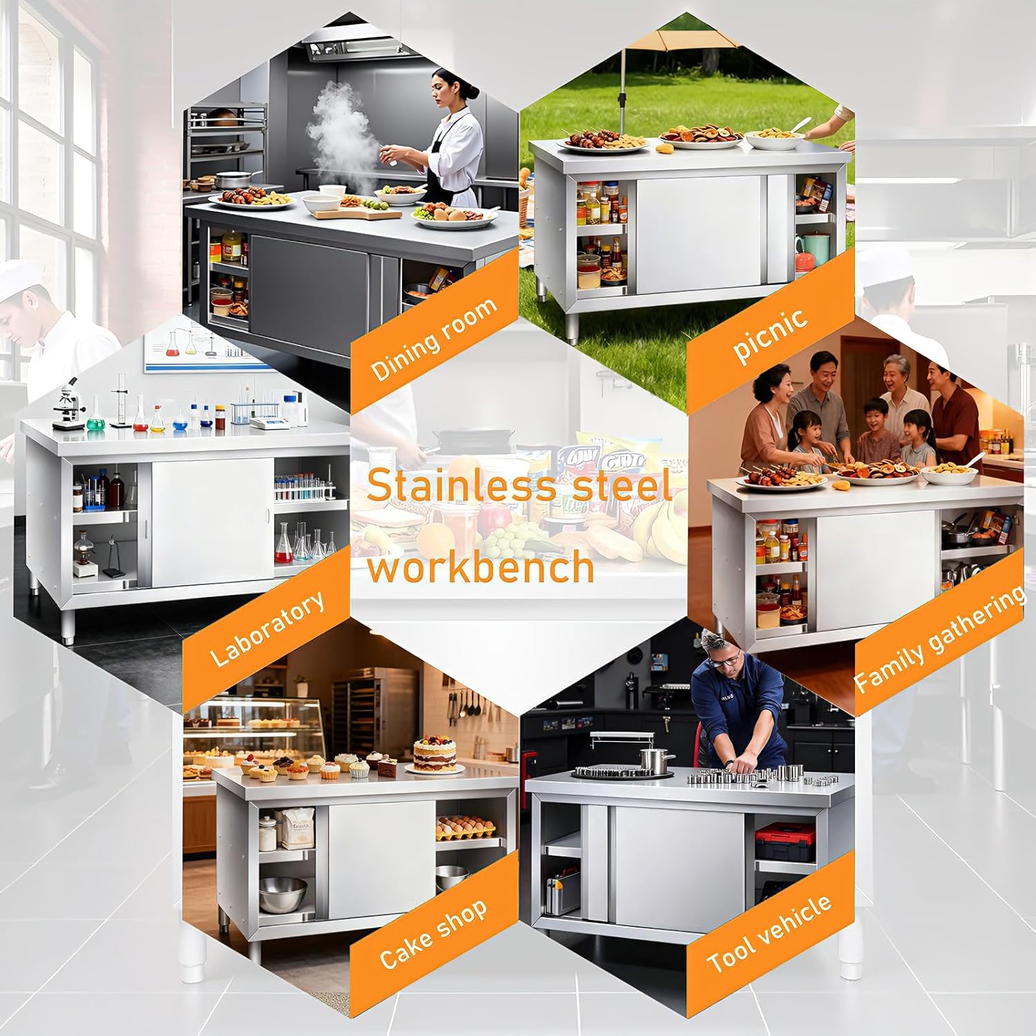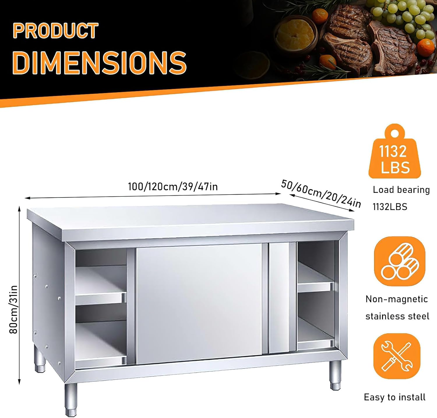 | Set Name | Stainless Steel Commercial Worktable W/Sliding Doors (47in*20in, 1132 lbs) |