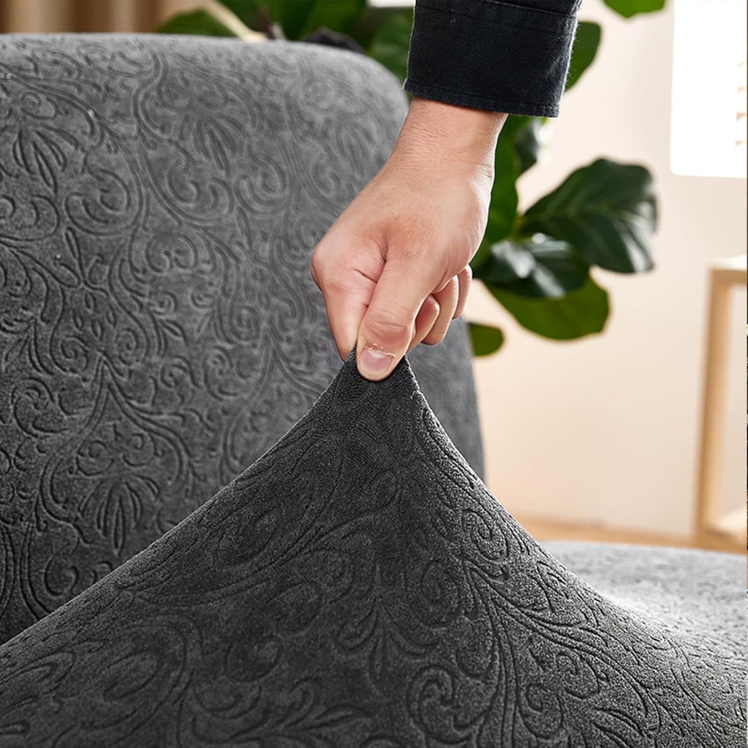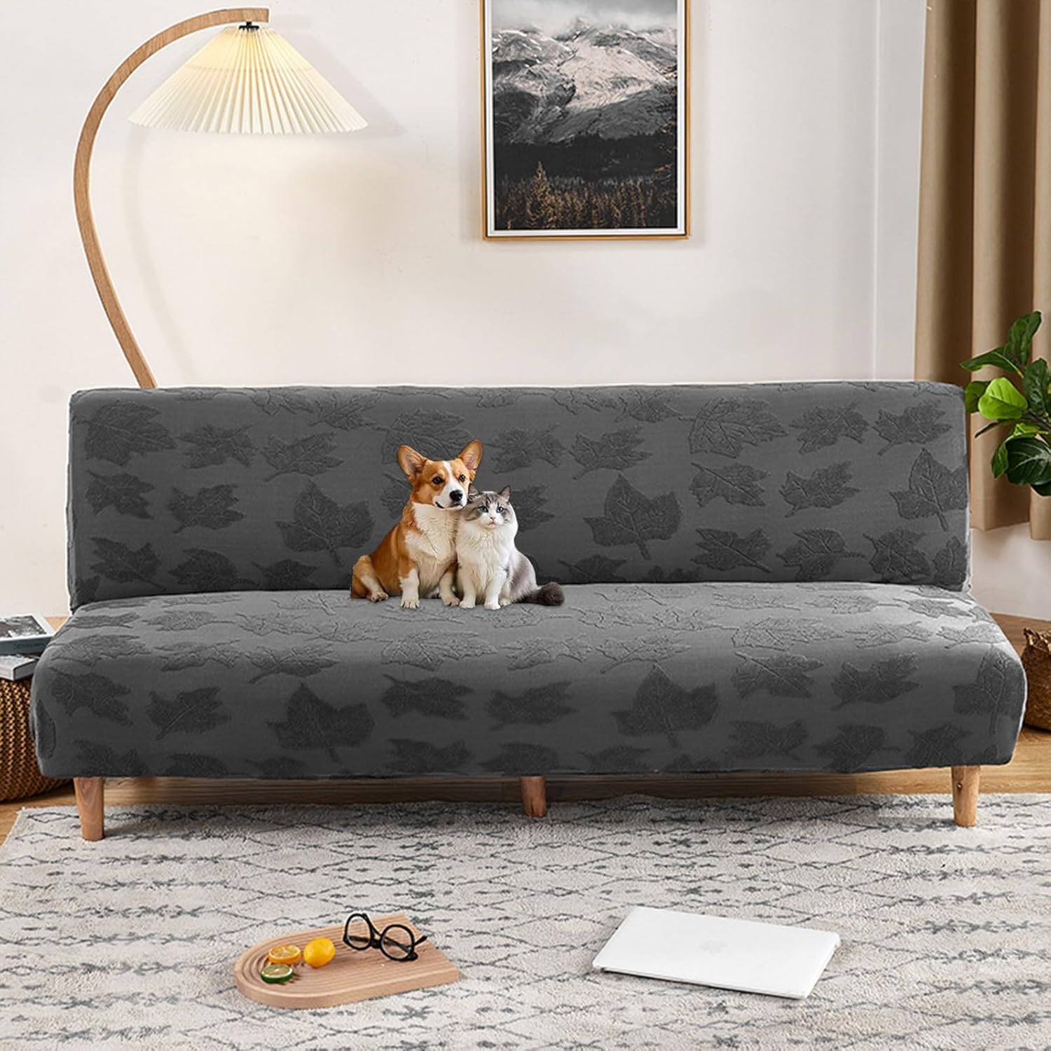 Protect your furniture effortlessly with our living room sofa cover. Our one-piece sofa cover features an elastic base that provides 360° coverage for your furniture. It not only effectively prevents scratches, mud, dirt, and daily wear but also resists stains and dust.Specification:Fabric: 95% polyester and 5% spandexStyle: Modern and simpleMachine washableFits most armless sofa sitting width between 160-190cm(63-74.8in)Please measure your sofa before purchase.Package Includes:1 x Futon Cover