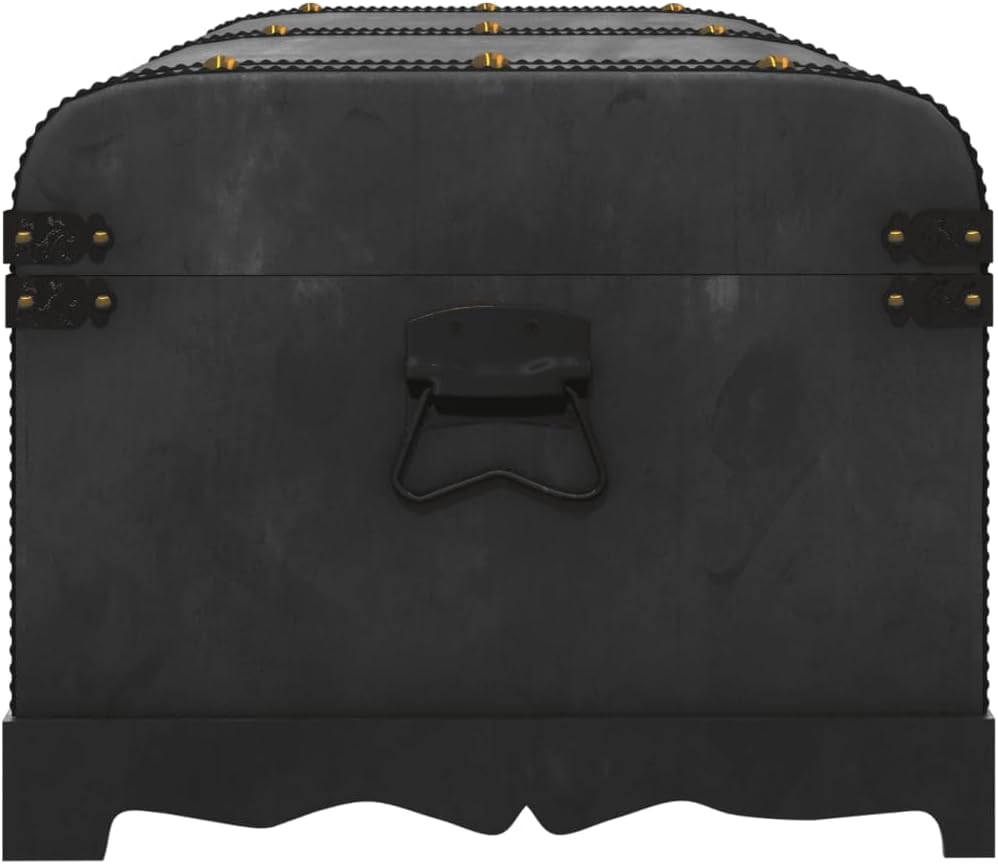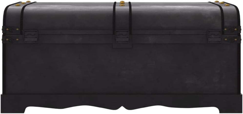 This Vintage Wooden Treasure Chest mixes classic style with practicality, serving as both a charming decor piece and a useful storage solution. Its smooth black exterior adds elegance while providing lots of space to keep your belongings tidy, perfect for stashing clothes, linens, or your favorite books.Spacious Interior: The treasure chest has roomy dimensions of 35.4 in in length, 20.1 in in width, and 16.5 in in height, giving you a great place to store loads of items. This space means all your favorite stuff has a proper spot, keeping your living area tidy.Stylish Decorative Inlays: Nice inlays on the outside boost the chest's look, showing off a vintage style that captures the feel of a past era. It’s a great conversation starter that fits both modern and traditional homes.Sturdy Plywood Construction: Made from quality plywood, this storage chest is built to handle daily use while staying strong. Its robust design ensures it remains a fixture in your home for years.Lacquered Finish: The sleek lacquer finish not only gives it a glossy look but also protects against wear. Cleaning is simple; just wipe it down with a damp cloth to keep it looking great.Ideal for Any Room: Versatile in function, this chest works well in various spots, whether in the bedroom for linens or in the living room for decor. Its unisex design suits any home decor style.Color: BlackShape: RectangularMaterial: Wood PlywoodFinish: LacqueredIndoor/Outdoor: Indoor OnlyCover Included: NoRoom: Living RoomDimensions: 20.1 in x 35.4 in x 16.5 in (W x L x H)Surface Height: 16.5 inWeight: 19.18 lbsLadder: NoDelivery Contains: 1 x Treasure ChestAssembly Required: YesRecommended Number of People for Assembly: 2