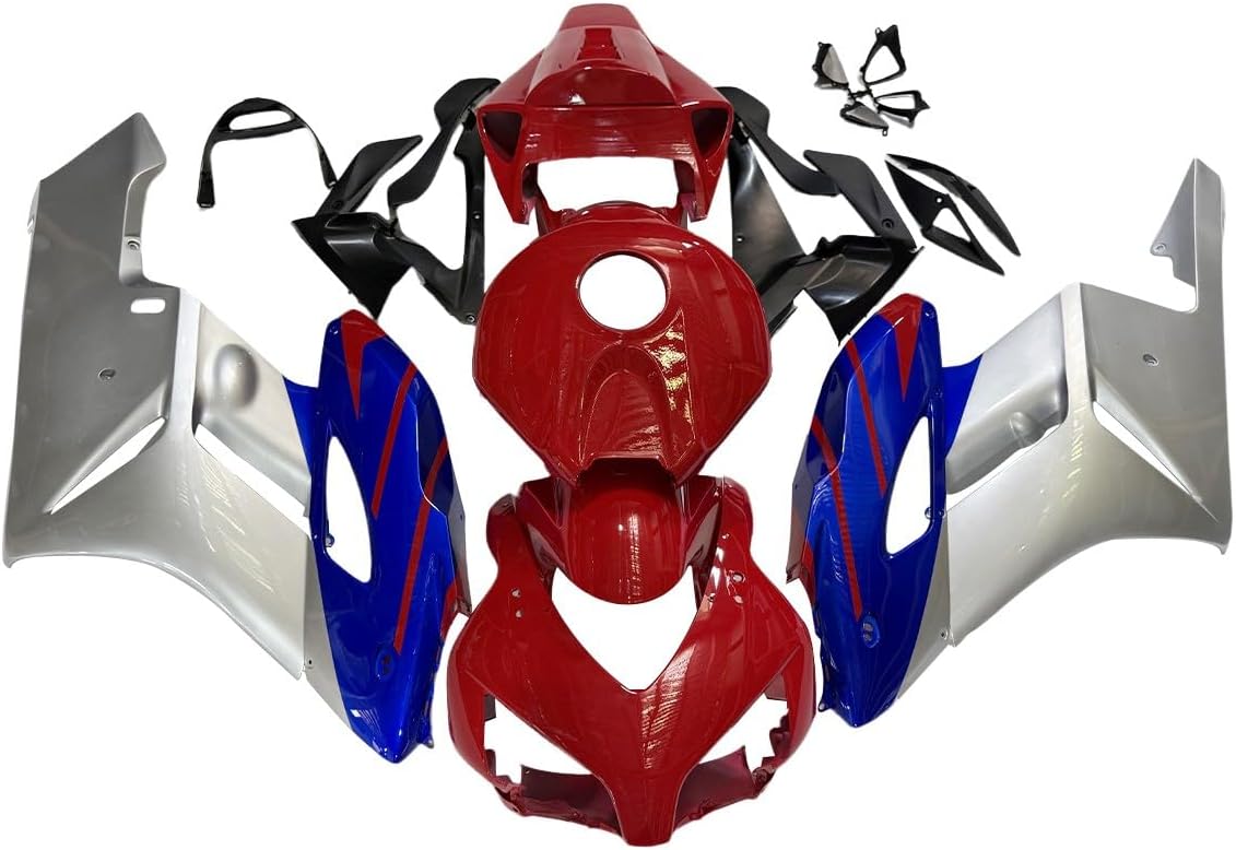 Description:FAIRINGS FITMENT: For Honda CBR1000RR 2004 2005 MotorcycleMOLDING: InjectionMATERIAL: High quality, flexible and durable ABS plasticsCOLORS: Fairing will be as the pictures shown, and may NOT match the color of OEM or your original parts.CONDITION: 100% Brand New aftermarket non-OEM parts and the holes are pre-drilledPieces Included:COMPLETE FAIRING KIT: front nose fairing + left/right side fairings + front fender + tail fairing and inner trim parts (All parts shown in the pictures are included)OTHER ACCESSORY: Heat Shield & Tank Pad & Windshield & Fairing Bolt KitInstallation:Highly recommend installed by professional (Installation instruction is not included, please contact us if you encounter any installation problems)Note:If item got damaged during shipping (seldom happen), we'll provide replacement for free upon photo confirmation.This is an aftermarket custom item, not an OEM part. It will fit the models listed but modification may or may not be required. This item is intended for professional installation. Make sure it will fit before you buy. Thank you for your understanding.