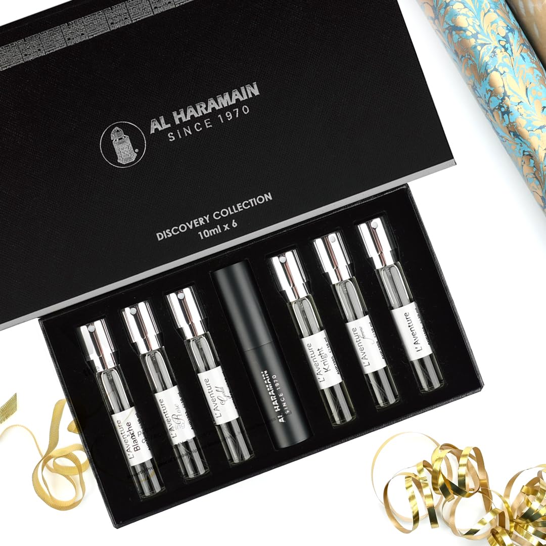 Discovery Collection - Laventure by Al Haramain is a 6-piece mini gift set with 0.33 oz EDP sprays including LAventure and its variations. Perfect for exploring diverse scents or gifting, this set includes a perfume atomiser for convenience.