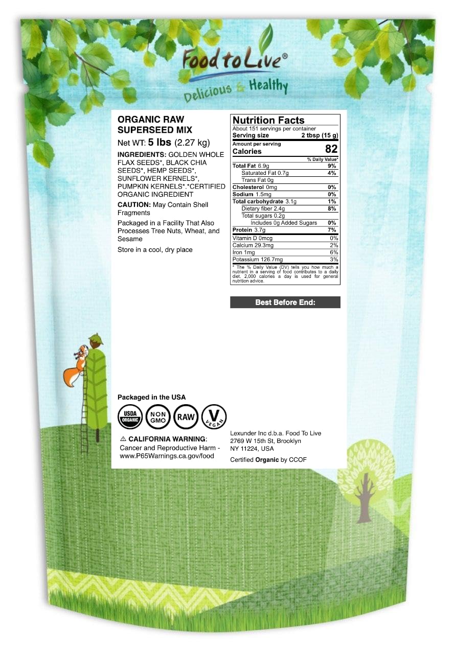 | Nut or Seed Type | Chia Seed, Flaxseed, Hempseed, Pumpkin Seed, Sunflower Seed |