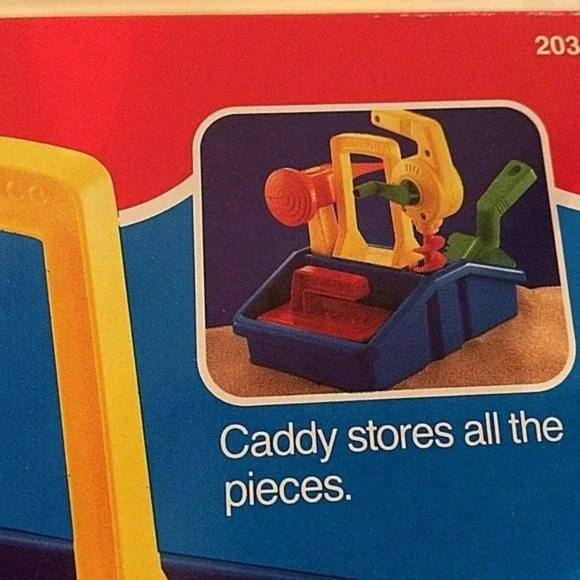 Vintage FISHER PRICE Toy Sand Workshop #2038 New 1990 Retired CollectibleFisher Price Sand Workshop #2038Vintage 90s1990 toy Retired collectibleNew in Box and never opened.Box is in good condition withslight wear on the corners.Rare set that was never removed from box and is now retired.Items included in the play set are:1. drill (no batteries needed),2. hammer,3. trowel,4. brick mold5. and the tool caddy for carrying the tools.Tool caddy has a built in sand sifter in the bottom.Smoke free and pet free home.Gift or use for Christmas holiday, Easter,birthday, vintage toy collector, retired collectible,