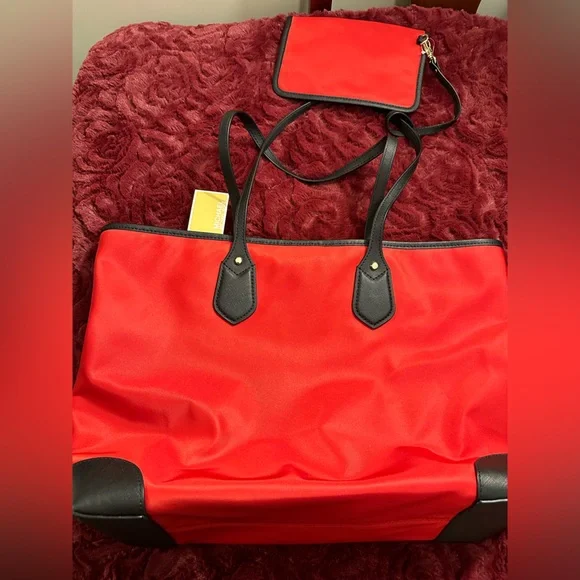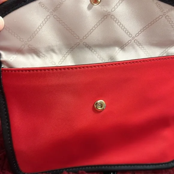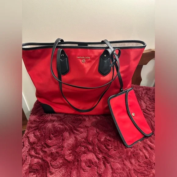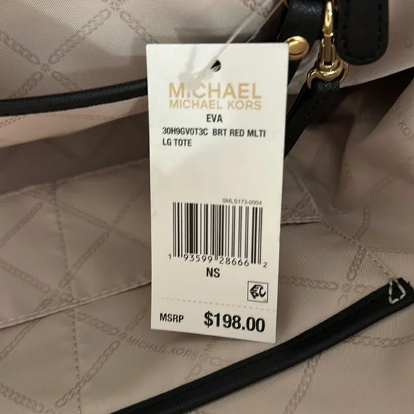 Brand New With Tags Michael Kors “EVA” Large Tote Bag -Snap closurePlease see pictures for inner compartmentswhich include:-1 large zipper pocket -1 large open pocket-4 medium size pockets -2 small pockets -1 attached loop(can use for keys etc) Purse Body Measurements:18 1/2 x 12 1/2 inches Shoulder Straps: 10 inchesAdditional Attached Small Purse:-Snap closureMeasurements:8 x 5 1/2 inches