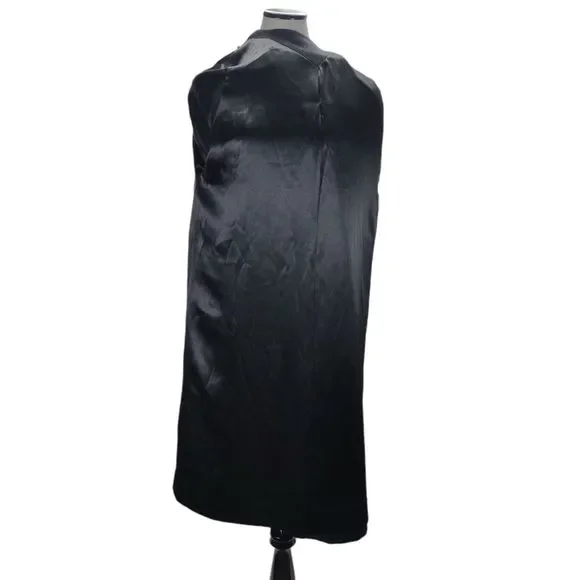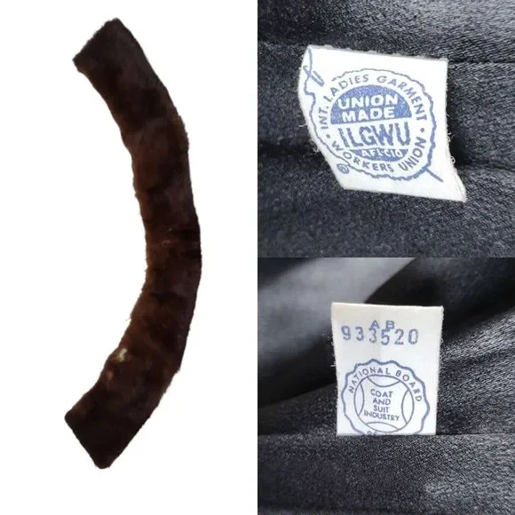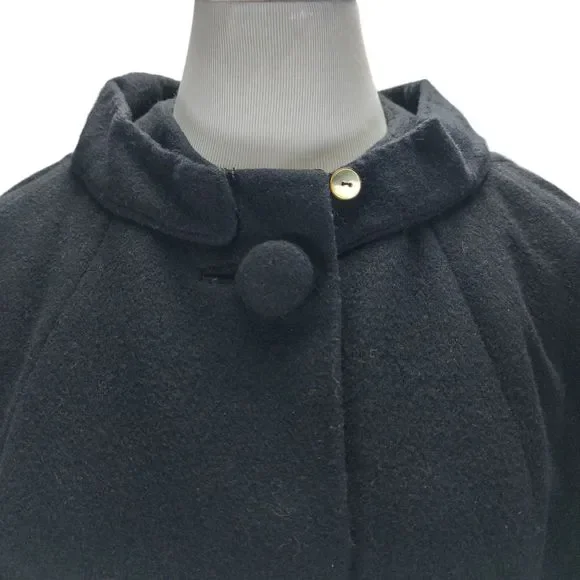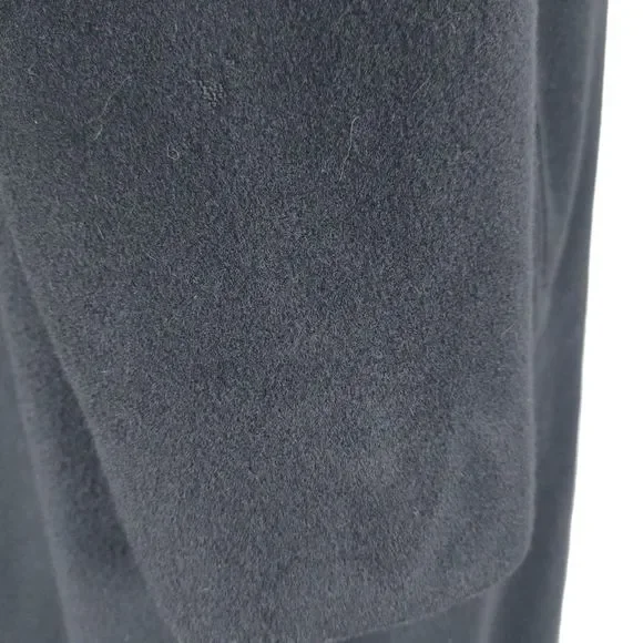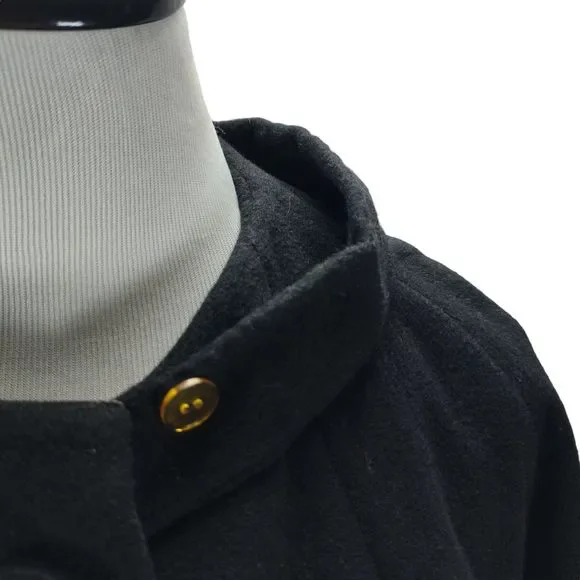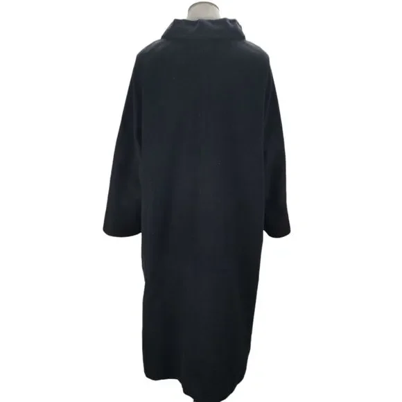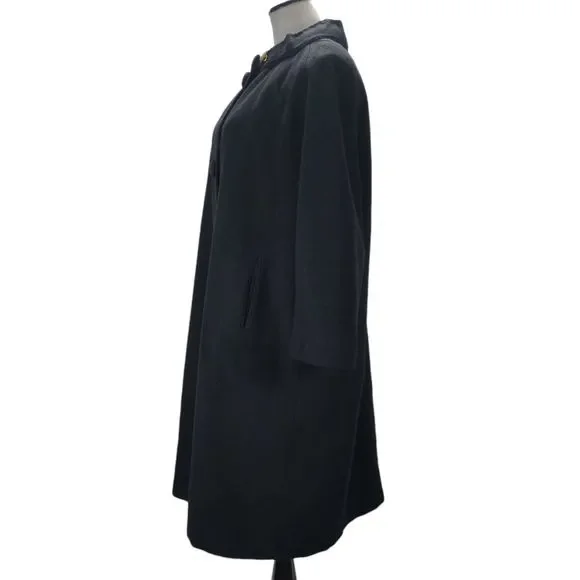 Brand: No brand, Union Made Color(s): Black Tag size: none, would best a fit modern L/XL depending on your personal fit preference Fabric/Care: Wool and feels like it may have a little cashmere; dry clean Vintage 70's boxy fit mid length coat with 3/4 length raglan sleeves. Three button closure, fully lined. Originally had a fur collar, the fur is in poor condition and starting to crack, since it was tacked on I removed it but will still include it for use in pattern making a replacement. The remaining collar is tacked on as well. A few moth bites on the sleeve but not noticeable until you get really close up. Heavyweight coat that weighs just under 4lbs. Actual measurements flat then doubled: bust: 48" waist: 50" hip: 58" length: 41" sleeve: 26" (from center back neck to cuff) shoulder: about 18" sweep: 62"