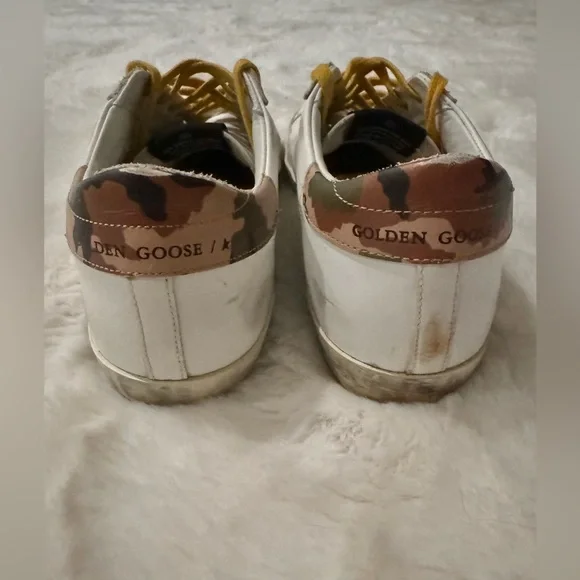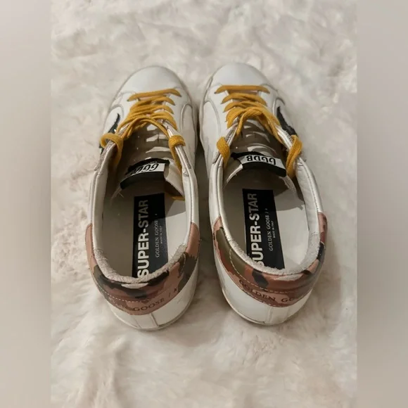 Pre-owned. Lightly worn, great condition. Please see all pictures. Golden Goose Super-Star Low Top Sneaker (Women) (Nordstrom Exclusive)Size: 10 US / 40 EUPer Nordstrom Website::Size info:Whole sizes only; for 1/2 sizes, order next size up.Details & careA metallic heel tab adds a bit of flash to a skateboarding-inspired sneaker, hand distressed and scuffed for a worn-in look right out of the box. A soft terry lining makes it comfy, even with bare feet.• Lace-up style• Leather upper/leather and textile lining/rubber sole• Made in Italy• Women's Designer ShoesQuestions? Leave a comment below!
