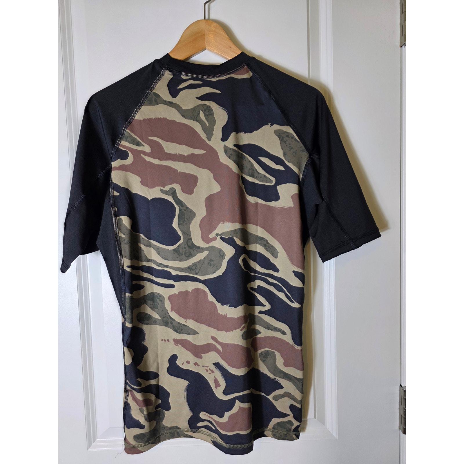 VOLCOM Black Green Camo Swimming Rash Guard Surf Skater Shirt Youth SZ XL