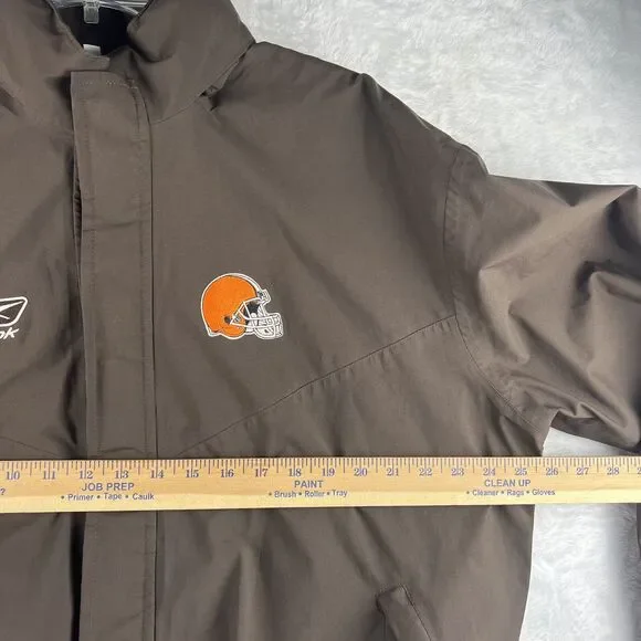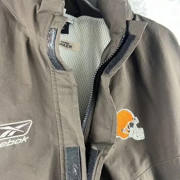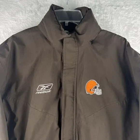 Vintage Reebok NFL Cleveland Browns Jacket Size LargeCondition: This item is in good pre-owned condition. However, there is slight peeling of the fabric and a small hole. Please examine the photos carefully for further details.Photographic Lighting may affect variations in the appearance of item photos.Please Check The Sizing on all clothing items before purchasing.