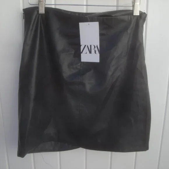 Bikercore Faux Leather Mini Skirt Black New with tags NEWSize: LargeWaist seam to seam: 14" elastic waistWaist to hem: 17"Fabric: 100% Polyester Condition: New with TagsAdditional Information:left side zipperright side cute details Zara Faux Black Mini Leather Skirt with side zipperZara Skirt Faux Leather Black Large New☆☆☆☆☆Feel comfortable purchasing from me. I am a 5-star Posh Ambassador II with same or next day shipping ☆☆☆☆☆