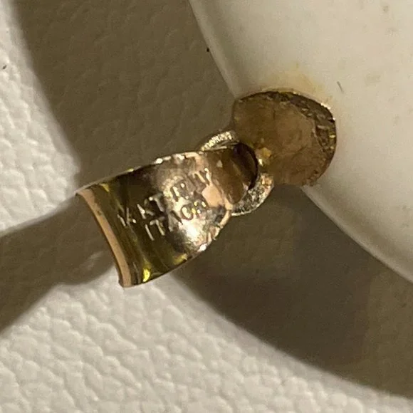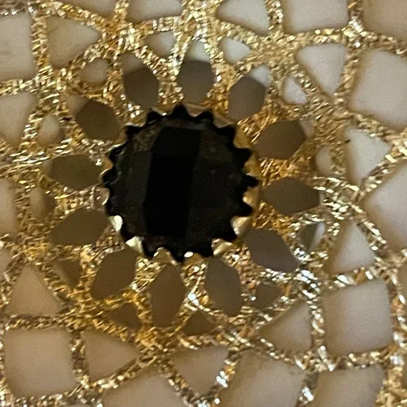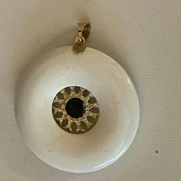 14K Italy Itaor White Enamel Pendant with Gold LatticeBlack Center StoneApprox width: 1 10/16"NWOT- Unique piece of jewelry