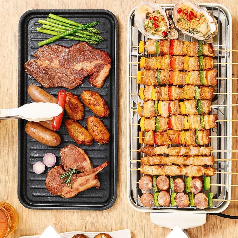 Barbecue skewers in an electric oven are for both.Pan frying and grilling net two modes unlock pattern barbecue.The raised texture effectively out oil and enhances the taste of fried and grilled food.Stainless steel grill mesh, made of thick and material. heating tube, heating for 5 minutes per furnace.: Electric baking trayColor: As shown in the pictureSize: 44.5 * 22.5 * 6cmInner liner material: stainless ironRated voltage: 220VPower: 1500WPackaging: Electric baking tray * 1 (excluding other displays)Notes:1. The product size is measured manually and may have an error of 1-2cm. The specific size is subject to the actual product!2. Different computers display different colors, and the actual color may slightly differ from the image below. Thank you for your understanding!Enjoy fluffy pancakes, gourmet grilled cheese sandwiches and flavorful stir fried veggies. Serves 6 to 8