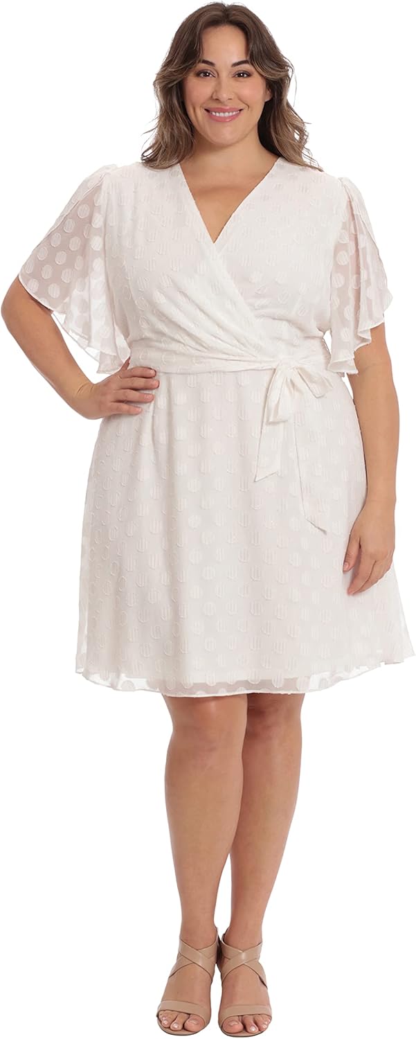 London Times Women's Dresses Pleat Tucks Surplice Draped Sleeve Flare Dress Guest of Occasion