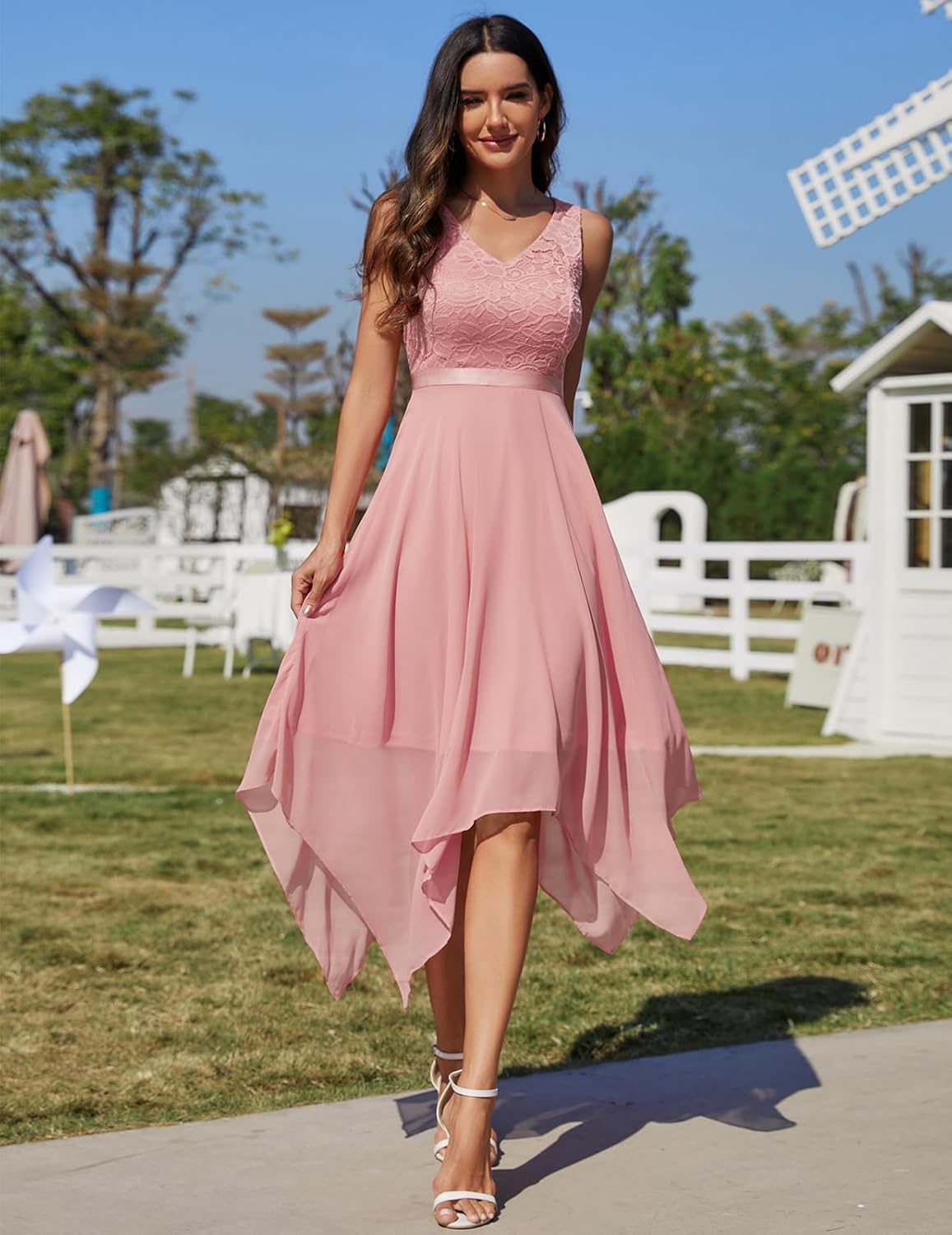 MULTIPLE CHOICE: Burgundy wedding guest dresses/ Black women’s formal dress 2024/ Blush pink bridesmaid dress for wedding/ Blue cocktail prom dresses spring/ White graduation dress for teen/ Navy mother of bride Dress/ V-neck ball gown/ Banquet Vintage dress/ Vestidos Elegantes De Mujer Para Fiesta/ Homecoming dress. COMFY FABRIC: This lace cocktail dress is made of high quality lace fabric with soft lining, comfortable and smooth, very flattering to natural curves. With this evening gown, you would definitely look charming and sparkly. STYLISH DESIGNS: Womens Asymmetrical dress/ A-line handkerchief hem dress/ Sleeveless dress/ Knee length dress/ Double v-neckline dress/ Empire waist dress for women/ Flowy dresses for women/ Irregular hem Dress. TRENDY STYLE: The classy prom dress can be dressed up with sparkling earrings and your favorite high heels, make you more feminine. This modest bridesmaid dress is very suitable for formal occasions, such as prom, formal party, ball, evening party, cocktail, photoshoot, homecoming, birthday, graduation, etc. FITS YOUR FIGURE PERFECTLY: You can wear this swing party dress alone in spring and summer, eye-catching and graceful. Empire waist dress with elastic waistband highlights your slimming waistline. Easy to put on and take off. Perfect addition to your wardrobe for a wedding or any dressy occasion.