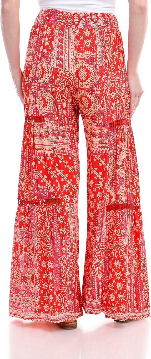 Angie Women's Wide Leg Pants with Lace Inserts is a fun lightweight wide leg pant with crochet lace inset and elastic waist band. These pants are great for any occasion. They are comfortable and stylish.