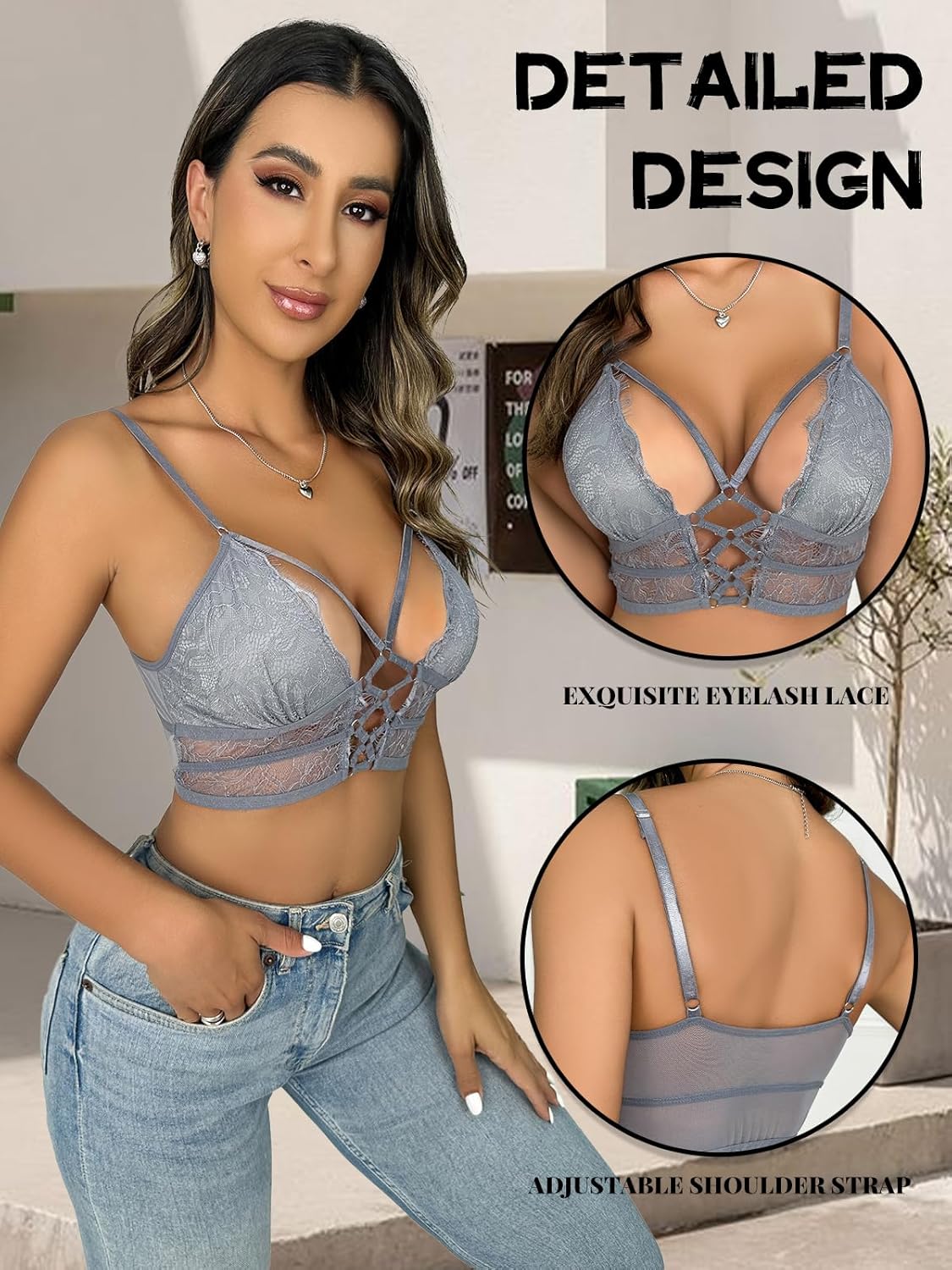 • Stylish design: V-neck eyelash cross design cami bra, personalized and sexy. Lace stitching makes your figure more slender. The back of this crop top is mesh fabric, which is soft, breathable and comfortable to wear.