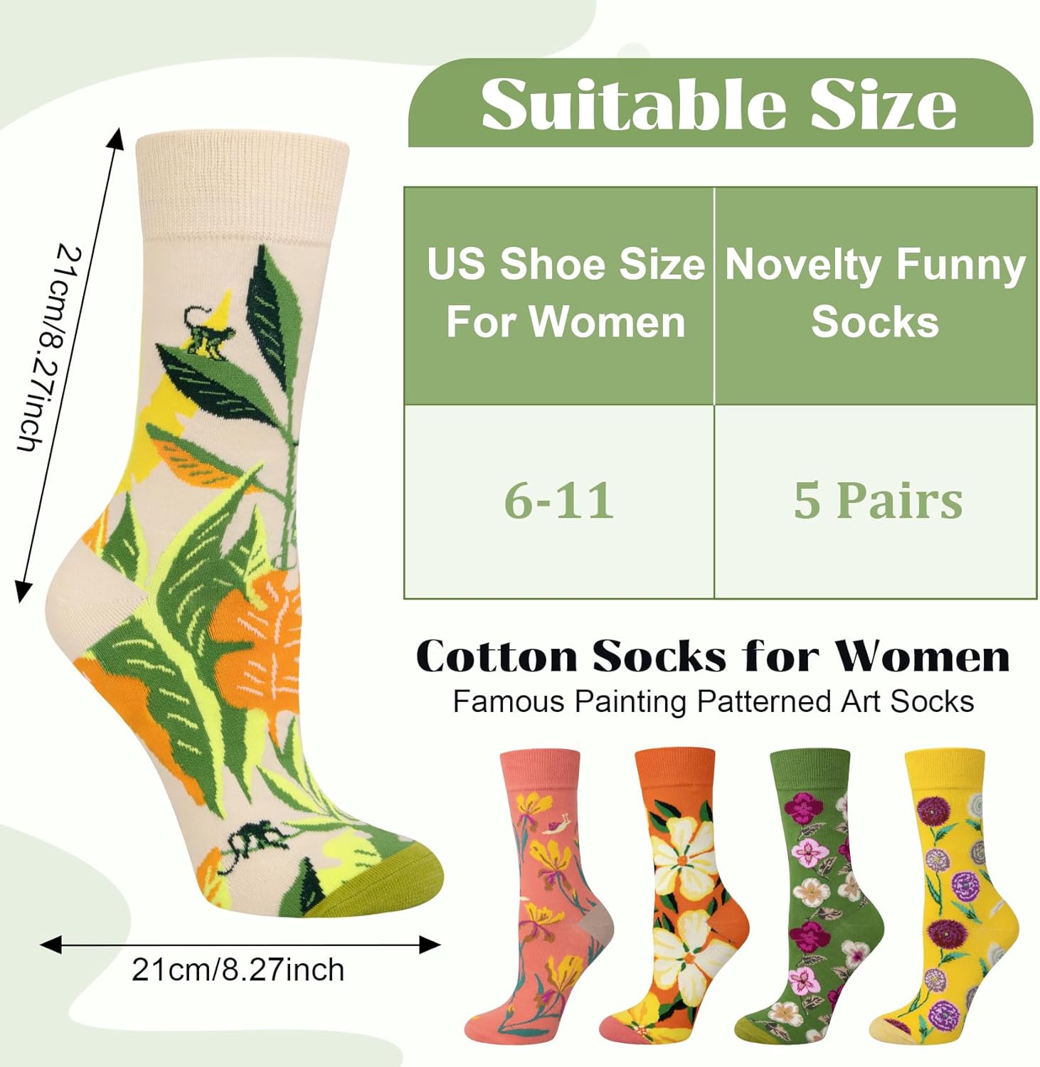 • Various Occasions: Our womens fun socks with funny and novelty famous painting patterns; Whether working and shopping in daily life, or attending exhibitions and celebrations on formal occasions, can make you look stylish and energetic
