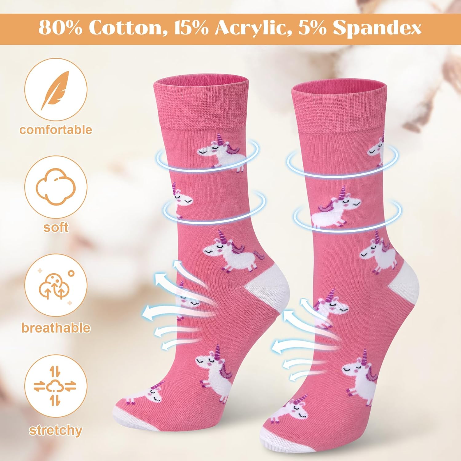 • Suitable Size: Our funny socks women are approximately sole length is 8.27", tube length is 8.27"; patterned socks fits shoe size, womens 5-9 which is comfortable, soft and stretch