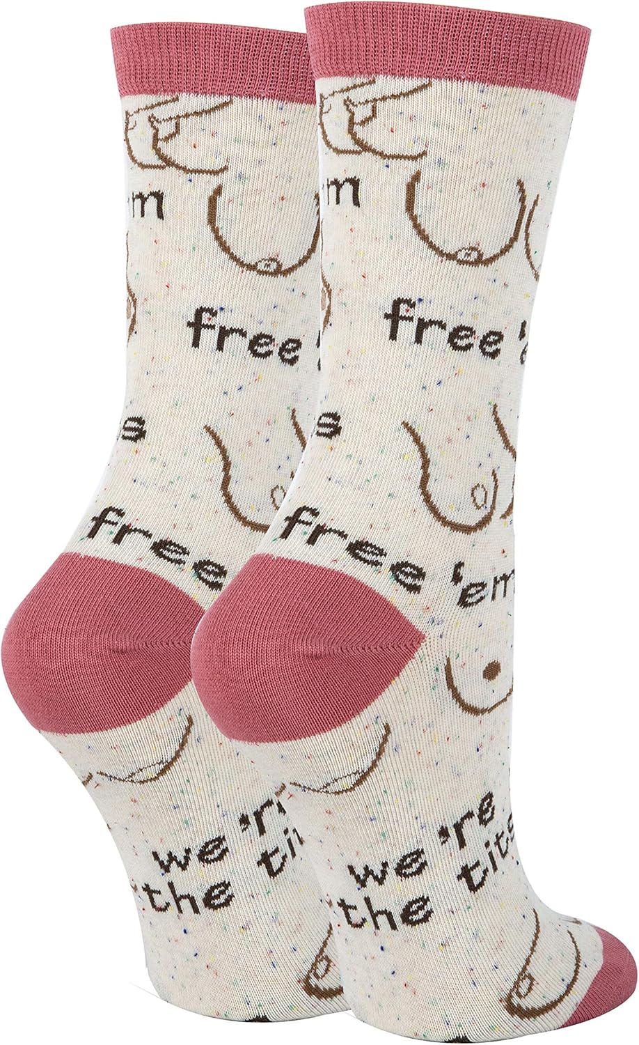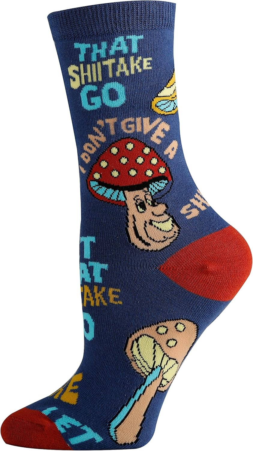 These crazy crew socks are designed to add a touch of silliness and fun to your everyday attire. Made with a soft, comfortable, stretchy, and breathable fabric, these socks are perfect for women's shoe sizes 5-10. Our novelty socks feature hilarious and cheeky designs that are sure to get a chuckle out of anyone who sees them. Whether you're looking for a gag gift or just want to inject some humor into your wardrobe, these socks are the perfect choice. Embrace the fun and let your personality shine with our silly and amusing crew socks. Get ready to turn heads and spread laughter wherever you go. Treat yourself or surprise a friend with these delightful women's adult-humor socks. Step into a world of hilarity and style with our funny and outrageous novelty crew socks.