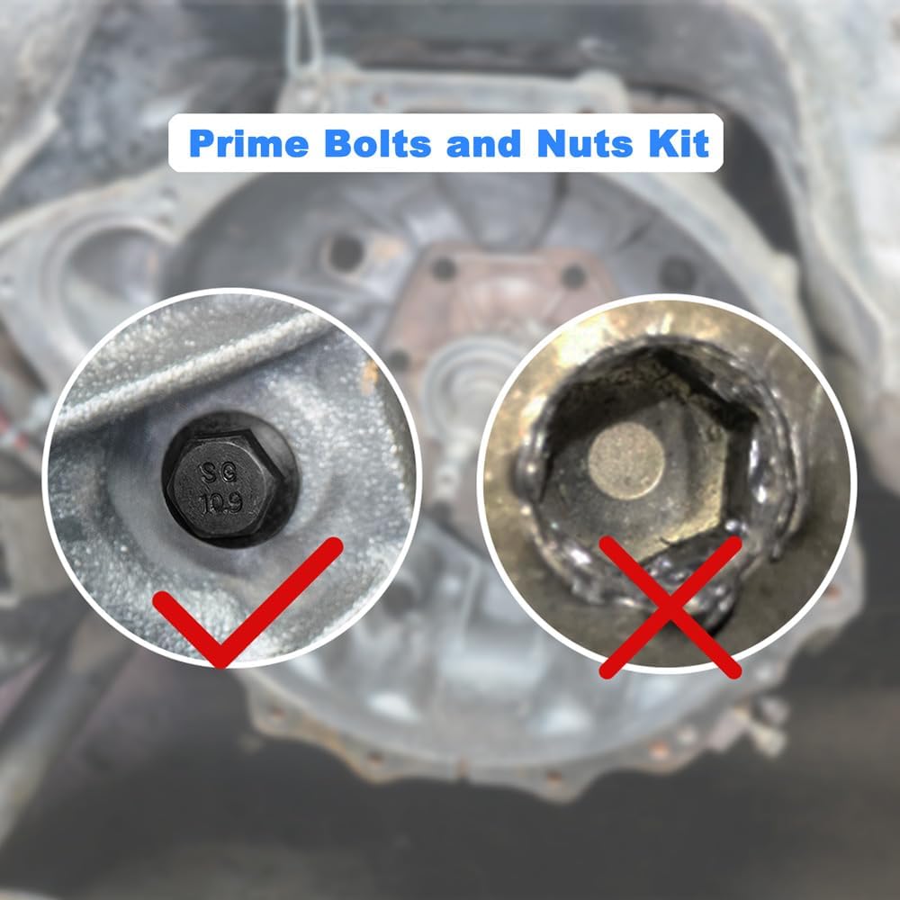 GuuYebe Bolts and Nuts kit,With Exhaust Manifold Torque Converter Engine Starter Transmission Pan Oil Pan Bell Housing bolts Assortment Set for Automotive Replacement Parts Package Includes: GuuYebe Exhaust Manifold Bolt X 16 PCS GuuYebe Torque Converter Bolt X 6 PCS GuuYebe Engine Starter Bolt (Long) & (Short)X4PCS(L)+2PCS(S) GuuYebe Bell Housing Bolt X 12 PCS GuuYebe Oil Pan(Transmission Pan) Bolt & Nuts X 40 PCS GuuYebe Transmission Pan Bolts & Nuts X 20 PCS