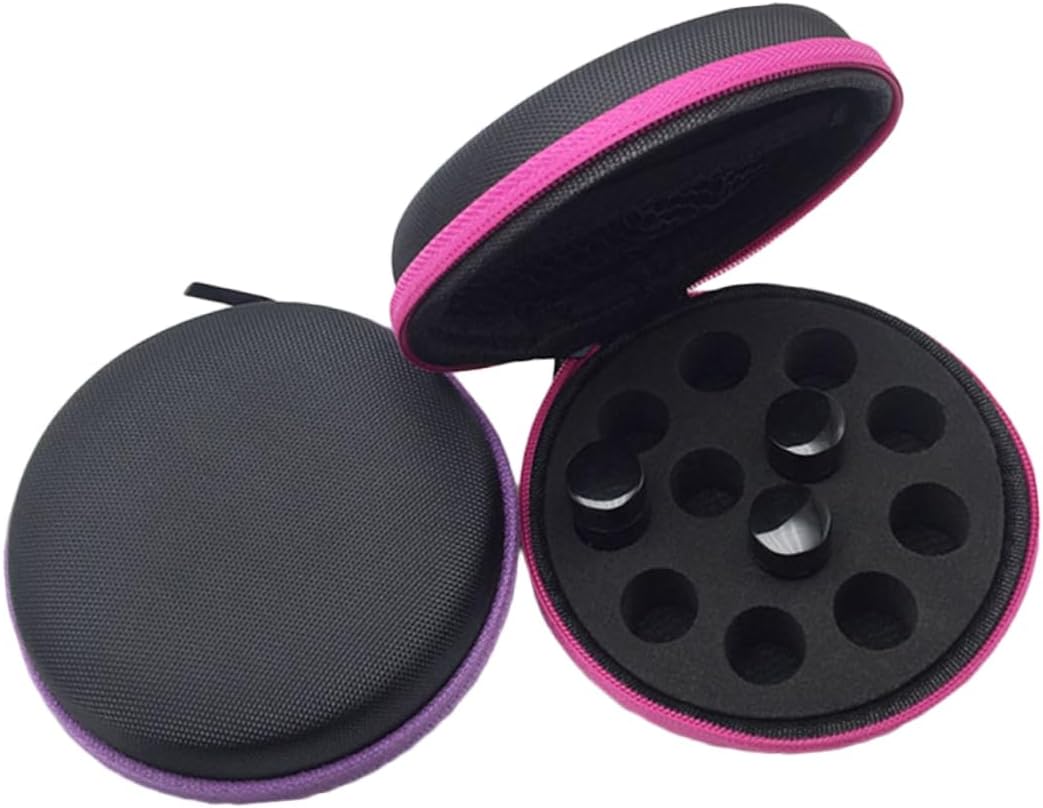 Package List 6 x Round Storage Bag Features - Warm Tip: Dear buyer, due to lighting effect, monitor's brightness, manual measurement and etc, there could be some slight differences in the color and size between the photo and the actual item Essential Oil Holder. - Color: Purple, rosy. - Features: Portable, Shockproof, Easy to Carry, 12 Compartments. - Size: About 10 x 10 x 4.5cm. - Material: Nylon. - Solid construction and easy to carry, choice for travel Essential Oil Bag. - Anti-slip design, it won't off your hands Essential Oil Storage Case. - Zipper design with great tightness, shockproof and drop- performance Essential Oil Case. - Protect against abrasion, , marks, , fingerprints and bumps Essential Oil Storage Bag.Goods DescriptionEssential Oil Storage Case The round storage bag is made from the strongest nylon material that is sturdy, and flexible to hold various sizes of oils.Essential Oil Storage Bag When you close the quality zipper you will feel at ease that your oils and accessories are safe for the next time you open the case again