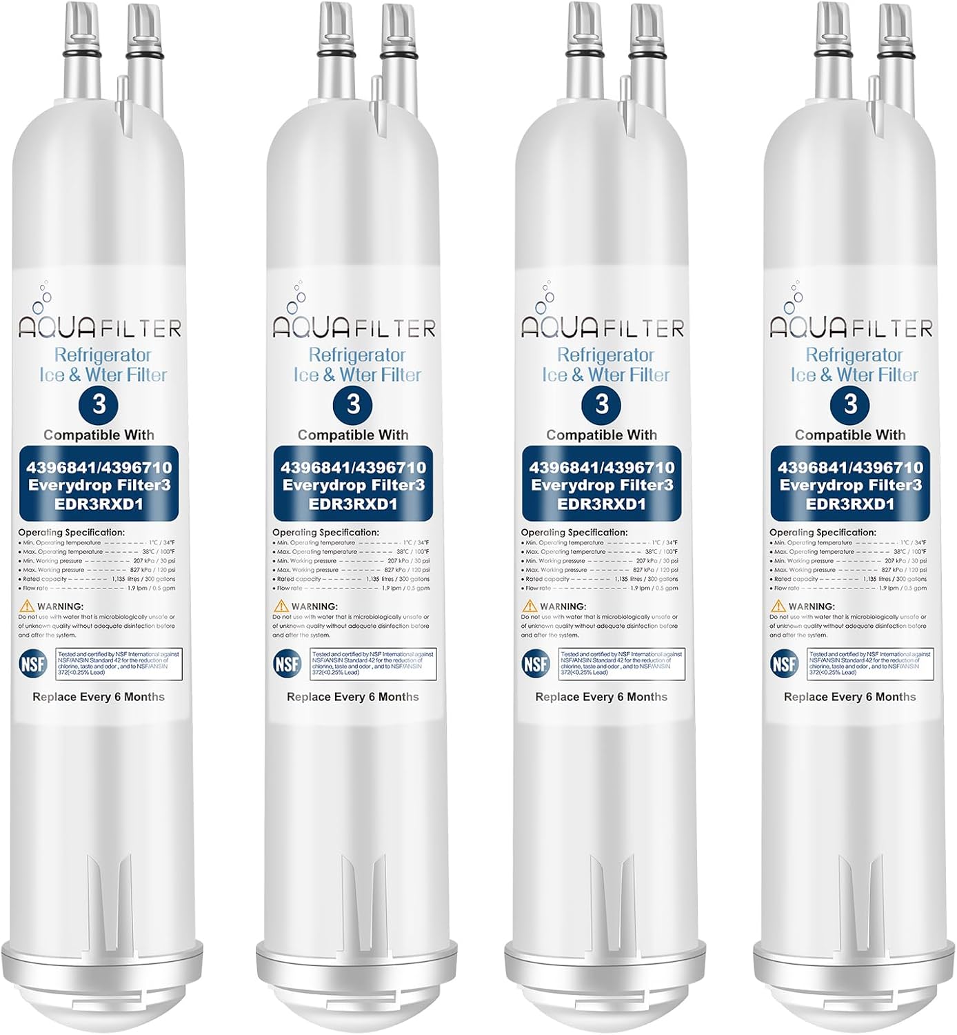 Why Choose Our Refrigerator Water Filter Replacement for EDR3RXD1, 4396841, 4396710, Water Filter-3100% Sri-Lankan Selected Coconut Shell Carbon Block with 2X Larger Surface Area and more Micro pores, which Filter Traps Contaminants in Tap Water.Significantly Improves Taste and Quality of Water,Providing Your Family Clean, Fresh, and Great Taste Drinking Water.Each filter must be Subject to Strict Test of Leak-Free and Seal Performance Under the Precision Measurement Technology.COMPATIBLE Refrigerator Water Filter MODELSPerfectly Compatible with 4396841, 4396710, EDR3RXD1, EDR3RXD1B, PUR Water Filter 3, P1WB2, P2RFWG2439684 1, 4396841B, 4396841P, 4396841T, 4396842, 4396842B, 4396710, 4396710B, 4396710P, 4396710T, 439672260515, 2260538, 2313412, AP3866834, FILTER3, P2RFWG2, T1KB2, T1RFKB2,T 1RFWB2, T1RFWG2, T1WB2L, T1WG2L, T2WG2L Perfectly Compatible with Ken-More following Models: 9020,9020P, 9020B,469020,469020P, 46-9020,46-9020P, 4609020000,9030, 9030P, 9030B, 469030,46-9030,469030P,46-9030P, 4609030000106.56586500, 106.57036601, 106.57064602, 106.57372700, 106.58963701, KSRX25FSSTO1, MSF25D2EAW00, WDS322FDA Perfectly Compatible with the Models:PUR- W10121145, W10186667, 4396841B, P2RFWG2, W10121146Specifications:Model: XLAQUA03 Flow Rate:0.5 GPM(1.9LPM)Micron Rate:0.5 MicronsPressure: 30-125PSI (207-862KPA) Temperature: 33℉(0.6℃) - 100℉(38℃) Customer-Satisfied ServiceWe are Sure to Provide You with the Perfect Purchase ExperienceRefund or Exchange Service due to the Products Quality Problems in 90 Days.