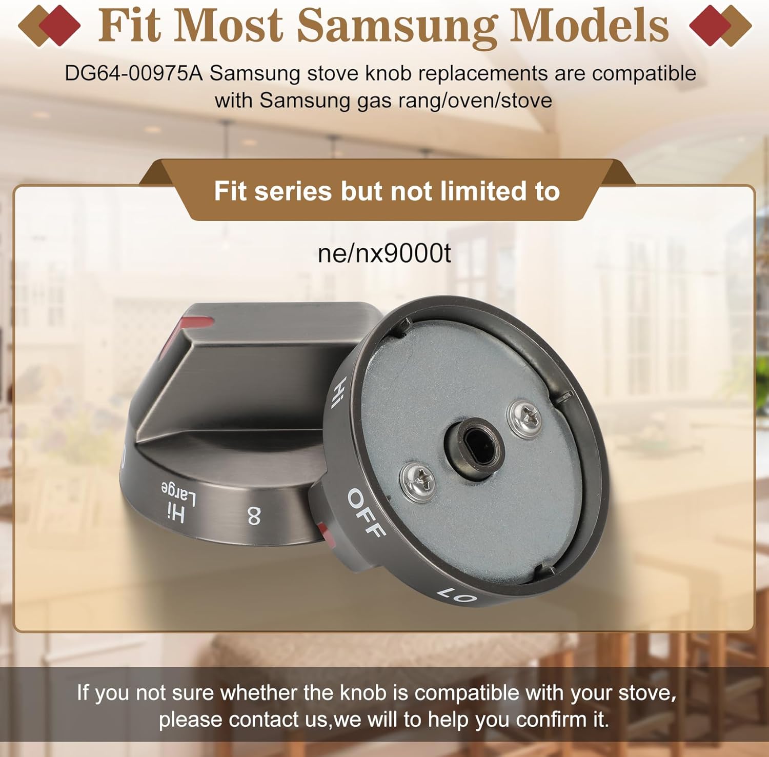 • 【DG64-00975A Compatible with models】DG64-00975A samsung stove knob replacements are compatible with samsung electric stoves ne/nx9000t, In order to help you better, you can provide your machine photo and model number to us. We'll help you confirm.