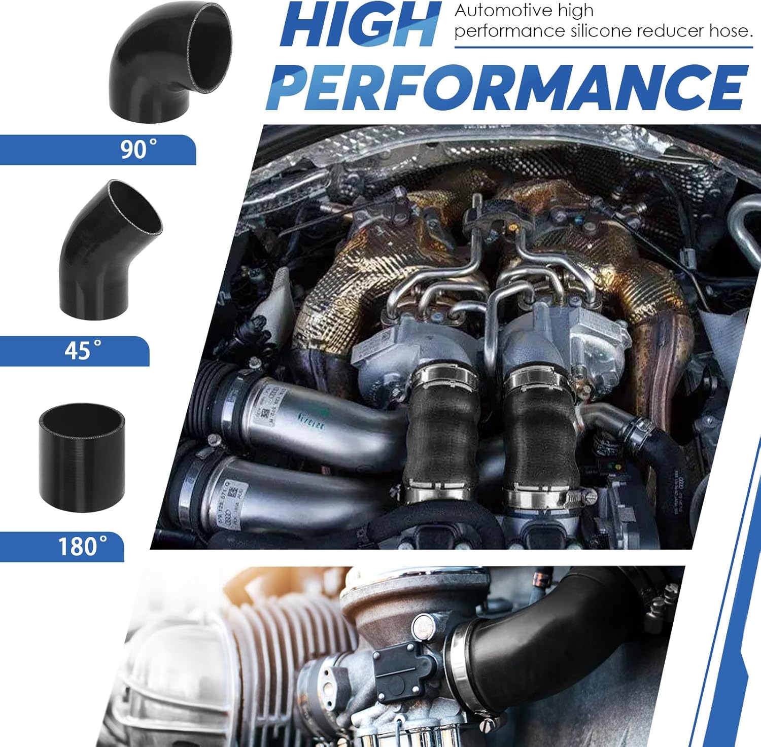 Glarks 45 Degree Elbow Silicone Hose, 4inch(102mm) ID 8inch(210mm) Length 4-Ply Reinforced High Performance Silicone Hose with 2Pcs 105-127MM Stainless Steel T-Bolt Clamp for Turbo, Intercooler and Intake 🥇 [Specification]: ♥Product Type: 45 degree elbow silicone hose ♥Material: Silicone ♥Color: Black ♥Size: Elbow silicone hose: 210mm/8.3”(L), 102mm/4”(ID) Stainless steel t-bolt clamp: 105-127mm/4.1-5” ♥Quantity: 3pcs 🥇 [Product Details]: ☛ The thickness and layers is much better than other silicone hose. Which could resist oil/high temp and corrosion resistance much better. ☛ Pure silicone is excellent resistance to ultraviolet radiation, water, ozone and oxygen. Long service life ☛ We send with two worm clamps, you don’t need to buy extra clamps. ☛Silicone hose are made from premium silicone material, this coupler is resistant to high temperatures up to 350°F. ☛ We offer lifetime service for products from our store. Any issue about this, please feel free to contact us. 🥇 [Package Included]: ♥1pc x 45 degree 4-ply elbow silicone hose ♥2pcs x stainless steel t-bolt clamp Total: 3pcs 🥇 [Note]: ※ Manual measurement, please allow slight errors on size.