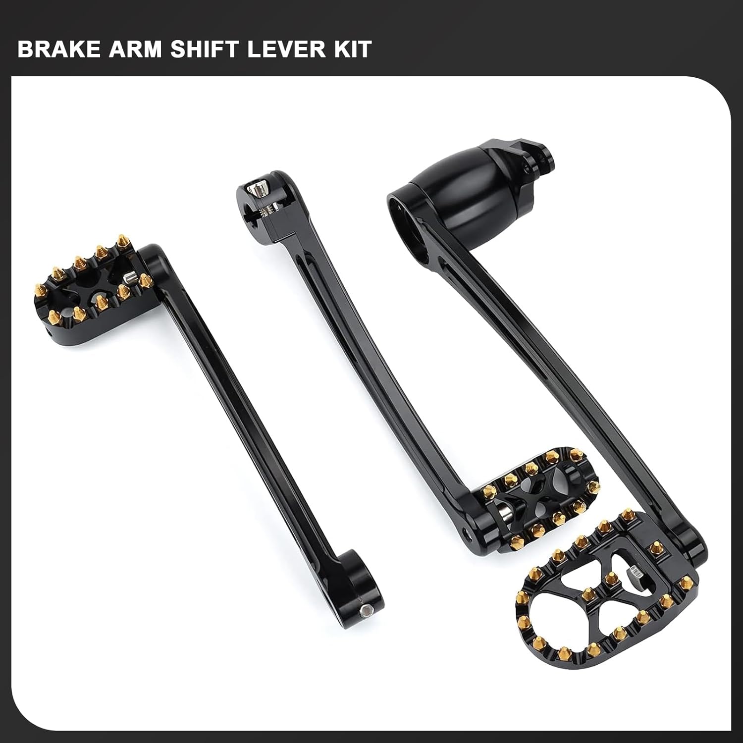 ATTENTION: "The brake/shift lever's arm length in standard length" is 1 Inch longer than stock.FITMENT: Fits for Harley 2014-later Touring Road King Street Glide Electra Glide Road Glide and Trike models. Please double-check the size before you buy!NOTE:Only applicable to the original motorcycle without modification or additional installation.For some motorcycles with additional lower fairing, the lower fairing must be removed, otherwise, it will be hit.Specification:Brake arm lever hole diameter: 19mmMaterisals: CNC Aluminum+Stainless Steel.The MX style makes your motorcycle more outstanding.Packaged: 1X Brake Arm Lever w/Pedal Pad 1X Front Shift Lever (Toe)1X Rear Shift Lever (Heel)2X Shifter Pegs. No installation instructions.