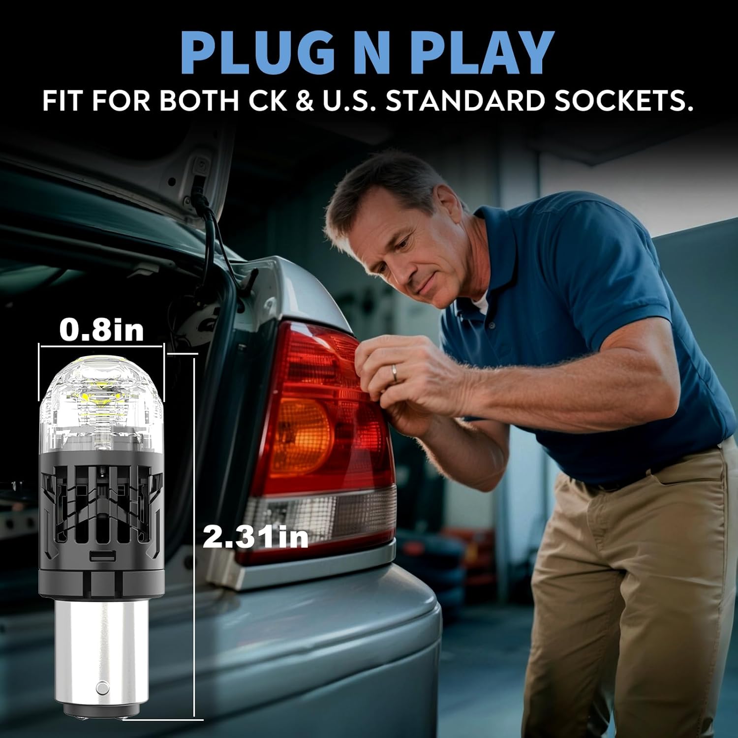 • UNIVERSAL FIT & HASSLE-FREE INSTALLATION. Non-Polarity Plug and Play, Fits 10+ sockets: 7440, 7443, T20, W21W, 7441, 7444, 7444NA, 7443R, 7440A, 7440LL, 7443LL. No wiring – twist clockwise for 3 seconds and done.