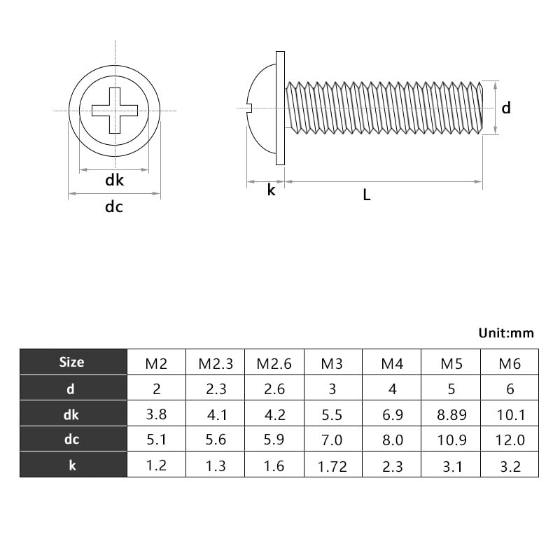 50Pcs M2 M2.5 M3 M4 M5 Cross Phillips Pan Head With Washer Screw For PC Case Motherboard Mount DIY Computer Screws BlackModel:Black Phillips Pan Washer Head Machine ScrewsMaterial:Carbon SteelProduct standard:GB/TProduct Size:" diameter" *"Length" / d * Le.g:M2 * 10mm; means diameter=2mm, Length=10mmquantity:50pcs/100Pcs