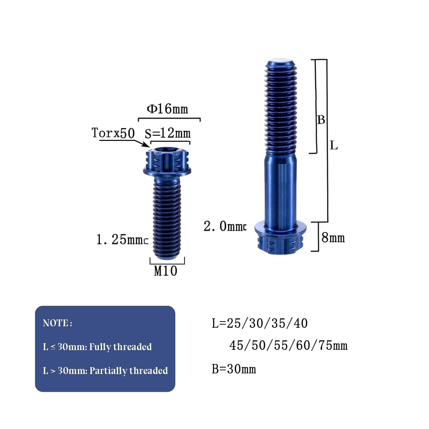 Titansmith Ti Bolts M10, Titanium Alloy Socket Allen Hex BoltAbout Us:Titansmith: 15+ years as a direct manufacturer of premium titanium fasteners for premier motorcycle racing teams. Our precision kits include application-specific bolts and nuts for engines, fairings, brake calipers, and critical components—enabling effortless upgrades for thousands of motorcycle models.Why Choose us?1. Internationally Certified: All our products meet or exceed critical ASME, ASTM, and ISO standards for performance and safety.2. Expert Technical Guidance: Our team provides support on material selection, torque specs, and application optimization for your specific build.3. 100% Rigorously Inspected: Every fasteners undergoes material certification, dimensional checks, and mechanical testing.4. Proven in Competition: Trusted by professional racing teams for extreme performance and reliability.Advantages of Titanium Bolts for Motorcycle/Bicycle Upgrades:1. Weight Reduction – Significantly lighter than steel, enhancing agility and speed.2. High Strength – Exceptional strength-to-weight ratio for improved performance and safety.3. Corrosion Resistance – Highly resistant to rust and chemicals, ensuring durability.4. Aesthetic Appeal – Premium metallic finish for a sleek, racing-inspired look.5. Long-Lasting Performance – Maintains integrity under extreme conditions and vibrations.Product Specification:Size: M10x20 25 30 35 40 45 50 55 70mmPitch: 1.25mm/1.5mmSurface:--- PVD Coating: Black, Golden, Rainbow Color--- Anodizing: Purple, Green, Blue Purple, Candy, Lake Blue, Anodizing Blue--- Burnt: burnt Blue--- Polishing: RawPackage includes:4 x Titanium BoltsTips: 1.If you have any questions, please feel free to contact us. We will reply you within 24 hours.2. The Customs Clearance Fee Shall Be Borne By the Buyer.