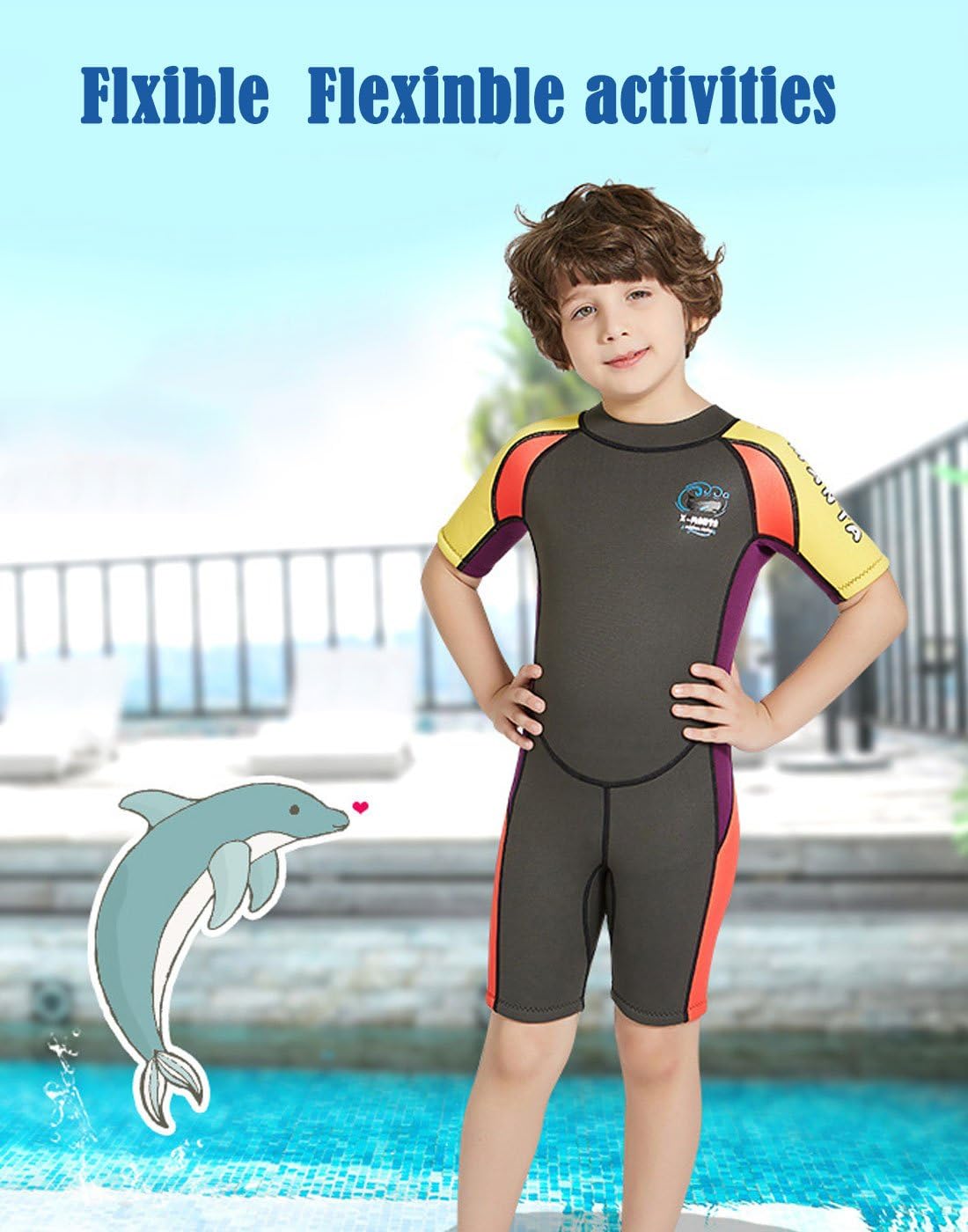 Features:Exquisite design offer perfect shaping and supportOne-piece, full body coverage protects kids from the sun's UV rays. UPF 50+ sun protection.2.5mm neoprene offers significant protection from jellyfish, coral, sunburn and other hazards,keep your child warm under the water.Excellent stretch provides you a free movement without restriction.let your kids swim as free as a fish.Occasion:Perfect for a beach getaway, pool swimming,bathing, surfing, water skiing, diving.Guarantee: A full refund is guaranteed if you aren’t satisfy with the product for any reason.Specifications:Material: 90% neoprene /10% nylonColor: As the picture showsSize Chart:Size----------Chest(in/cm)----------Waist(in/cm)-----------Hips(in/cm)------------HeightS--------------21.26/54--------------19.7/50-----------------23.6/60------------------35’’-38’’M--------------22.8/58---------------21.26/54----------------25.2/64-----------------38’’-42’’L---------------24.4/62----------------22.8/58-----------------26.7/68-----------------42’’--46’’XL--------------26/66----------------25.2/64-----------------29.1/74-------------------46’’-50’’XXL------------27.58/70--------------26.79/68-----------------31.52/80-----------------50’’-54’’Note:Please do refer to the size chart on the last image or description before purchase,order a size up would be recommended!!a full refund is guaranteed if you aren't satisfy with the item for any reason.Notice: The measurement may have 1-3cm (0.39-1.18inch) inaccurate errors. There might be slight colour deviation due to different displays. Package includes:1 * Wetsuit