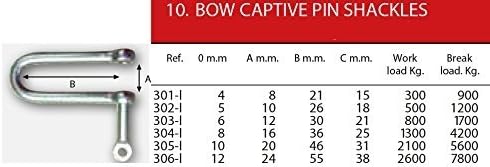 Captive pin shackle. Stainless steel 316. forged system.