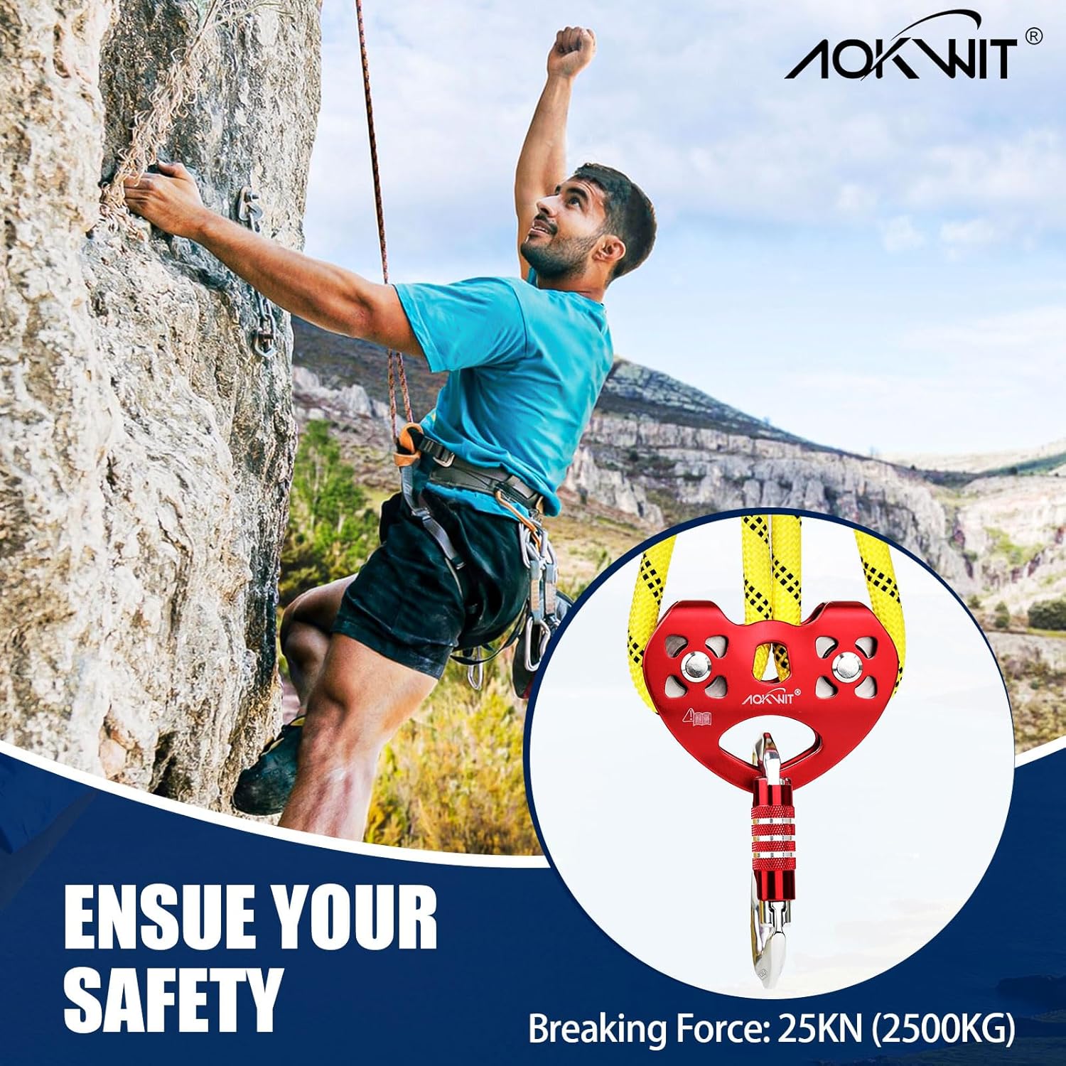 • 🔥【Strong Breaking Strength】AOKWIT rock climbing gear is strong enough to have a maximum breaking strength of 25KN(2500kg), so AOKWIT zip line pulley can keep you safe in most outdoor applications, such as aerial traverse, rock climbing rappelling or other outdoor activities.