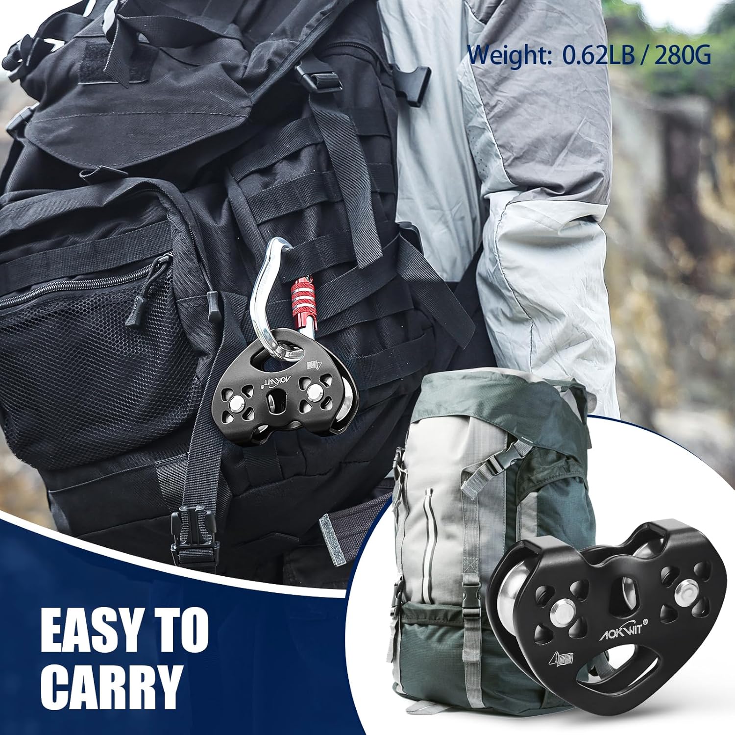 • 🔥【Multiple Use】AOKWIT tandem double speed pulley can be used for aerial traverse, rock climbing and rappelling, downhill, rescue, cargo transportation, aerial work, lifting theme amusement parks or other outdoor adventure activities.
