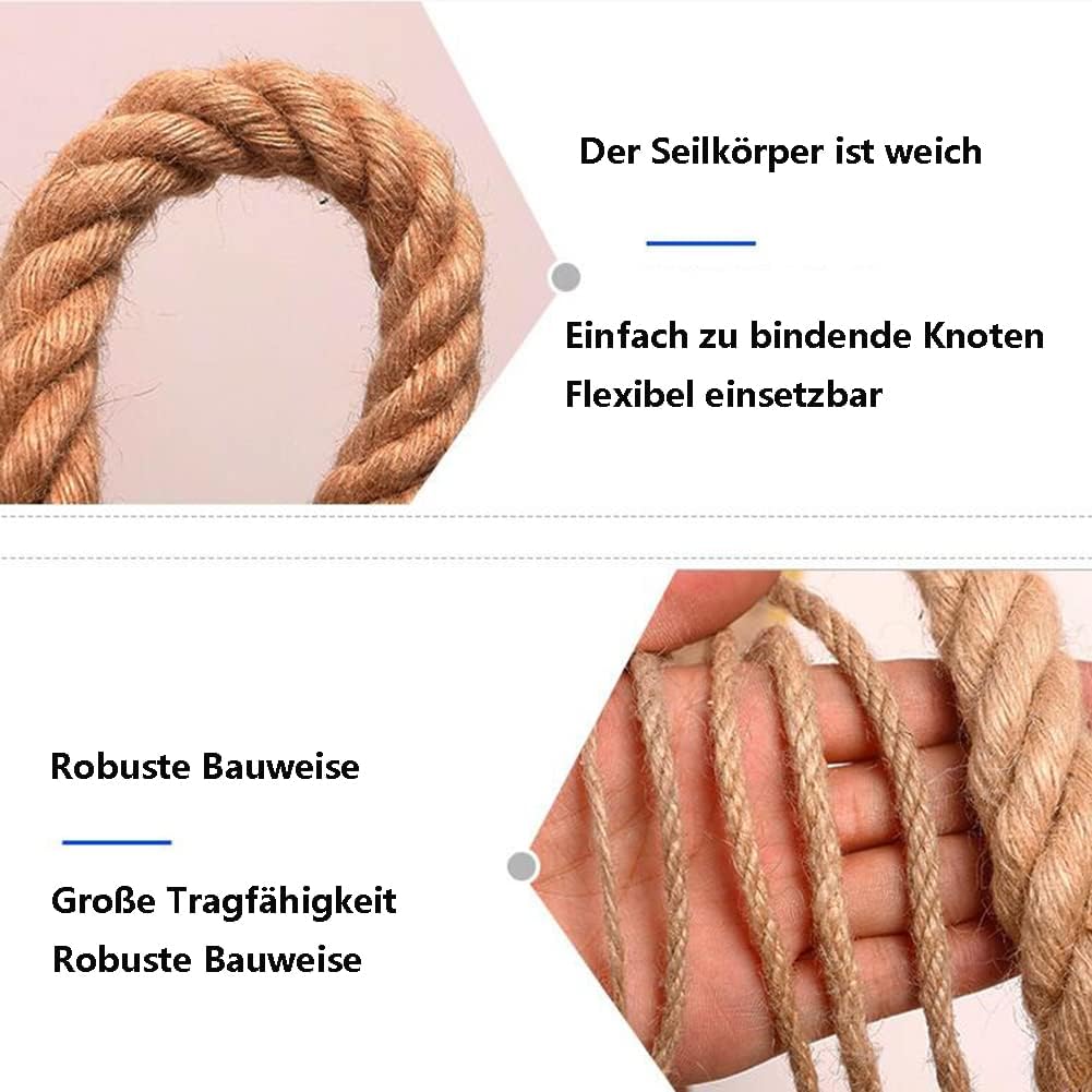 LIAN is a professional manufacturer of twisted jute ropes and a series of other products. We will do our best to provide you with premium products at reasonable prices. All we do is to bring convenience to your life and let you enjoy a better life.Why Choosing Us?Made of 4-strand twisted jute rope, it is strong, durable, abrasion-resistant, and has great strength and durability.The 14/16/18/20/22/24/mm mm manila rope is simple and simple, which can add an elegant atmosphere to your decoration and landscape design.Are you still looking for reliable jute rope? The diameter of the jute rope is length is 164 feet/50 m. Our product will not let you down!The manila rope can be widely used in hanging swings, tree engineering, tug-of-war, bundling, gardening, landscaping, fencing, decoration and so on.Product SpecificationsMaterial: natural juteDiameter: 14/16/18/20/22/24/mmLength: 10MPacking Includes1 x Jute Rope