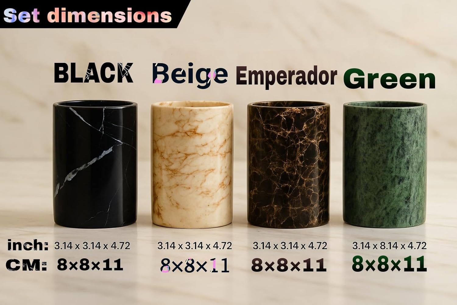 Add a touch of luxury and elegance to your bathroom or office with SS Antiquity & Marble Premium Marble Toothbrush Holder, handcrafted from natural marble with a modern design that combines luxury and functionality. This organizer features a soft velvet base to protect surfaces from scratches and sliding, making it ideal for use in the bathroom, kitchen, or office. This is a versatile holder, which can be used as toothbrush holder, shaving tool organizer, makeup brush holder, kitchen utensil organizer, or even as a pen holder for the desk. Its elegant design makes it a perfect addition to your luxury hotels, restaurants, and villas decor. With its practical size and sophisticated design, this holder offers you a neat and organized solution for storing your essentials in a tidy and accessible manner. Get it now and add a touch of luxury to your space! The size is 8x8x12cm(WxLxH) 3.14x3.14x4.72inch.