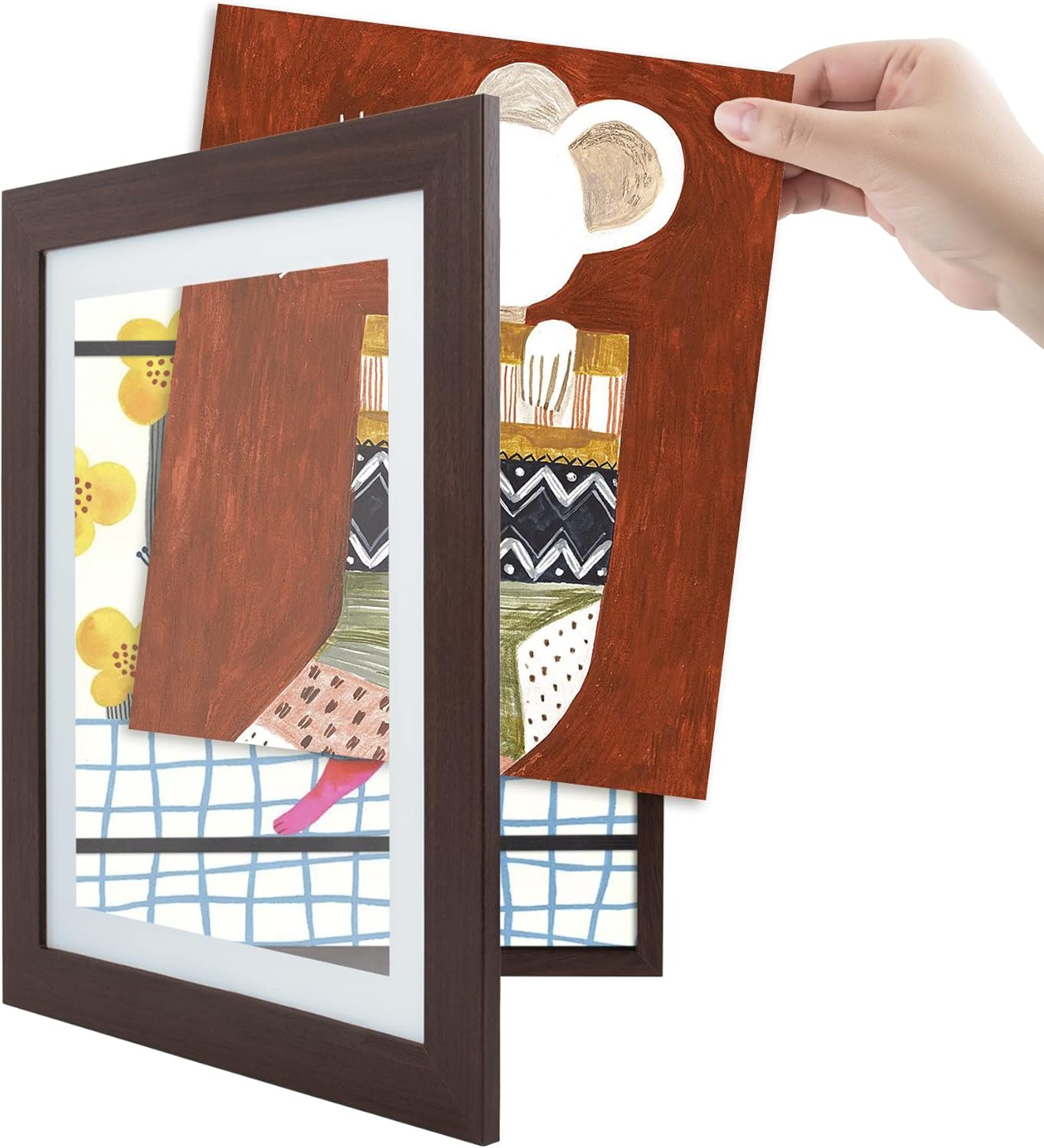 Golden State Art, 10x12.5 Kids Art Frames, Front-Opening, Great for Kids Drawings, Artworks, Children Art Projects, Schoolwork, Home or Office, Black And Walnet ,4 pack