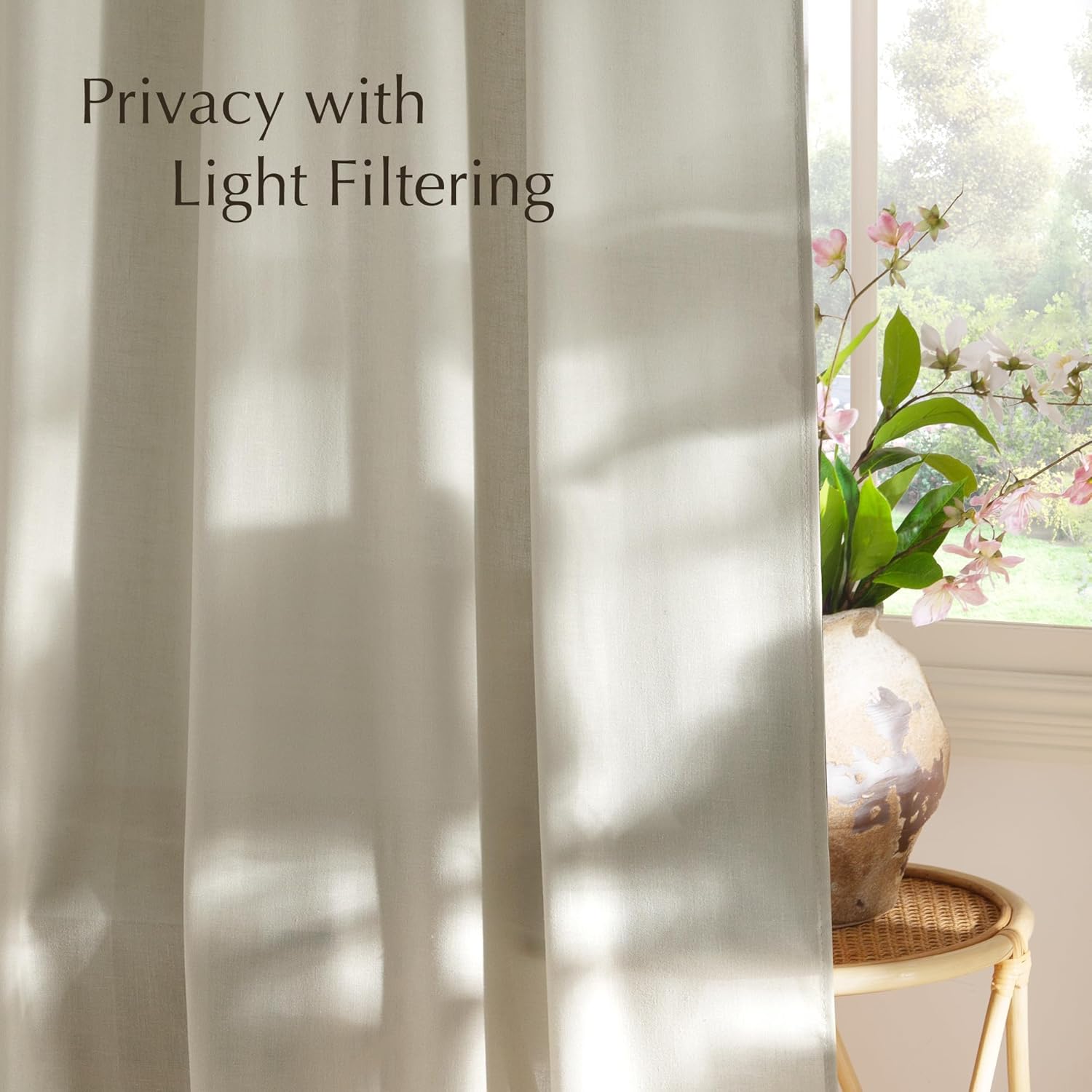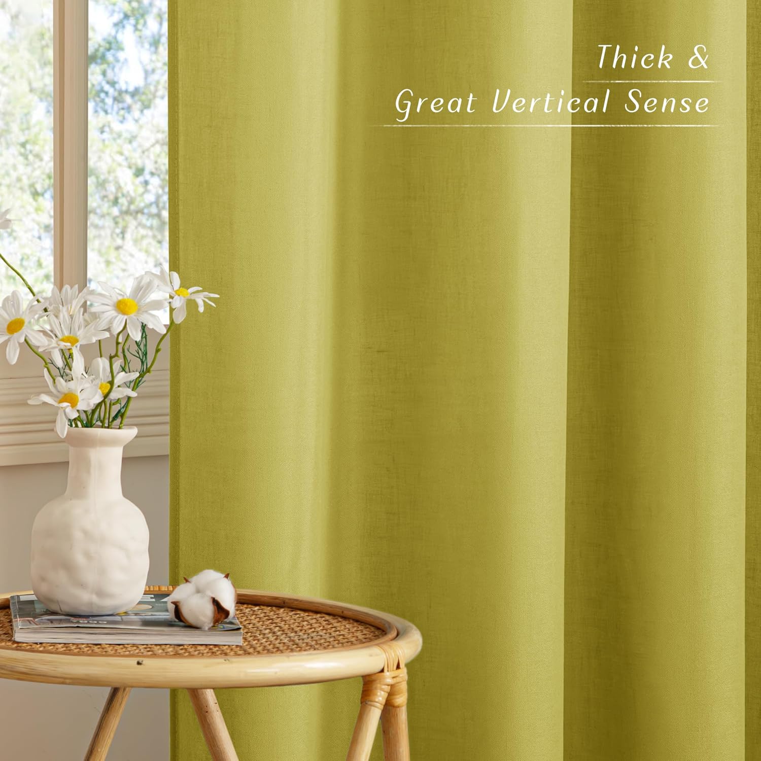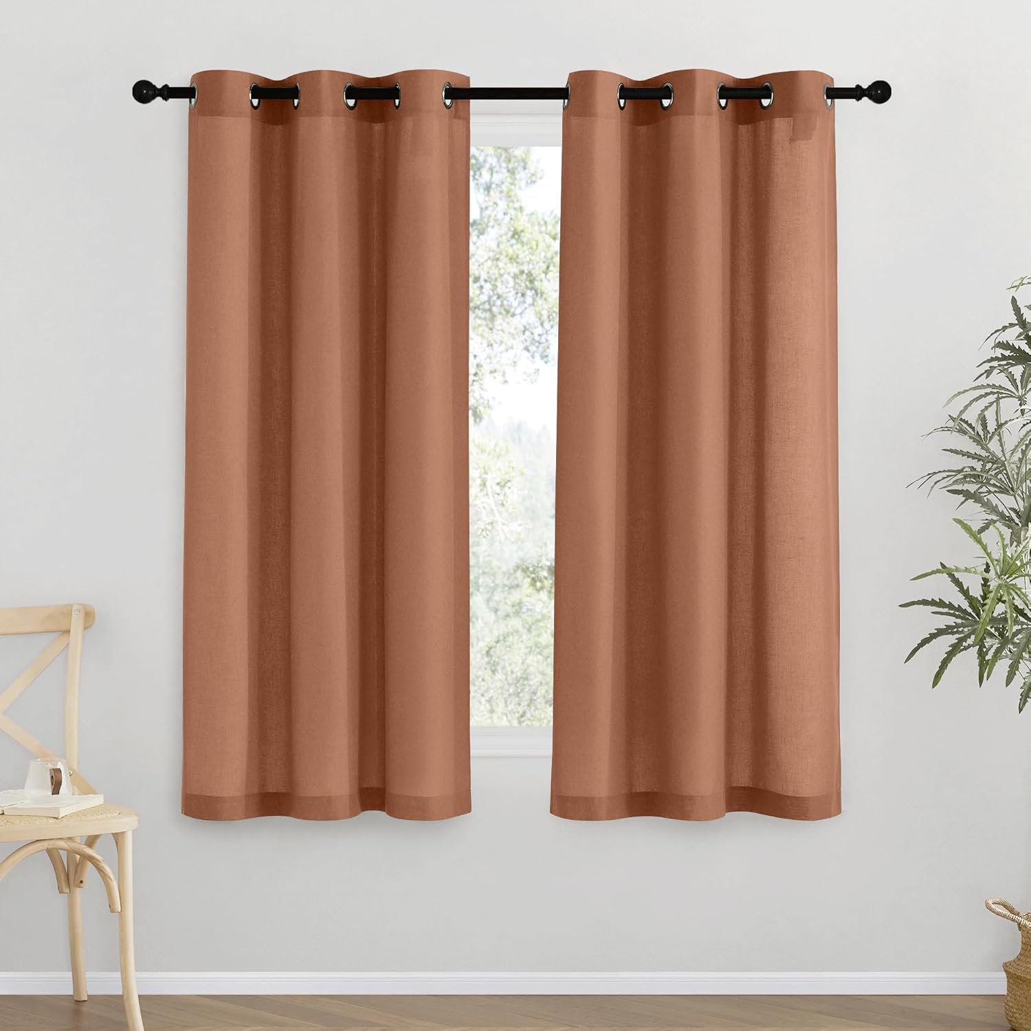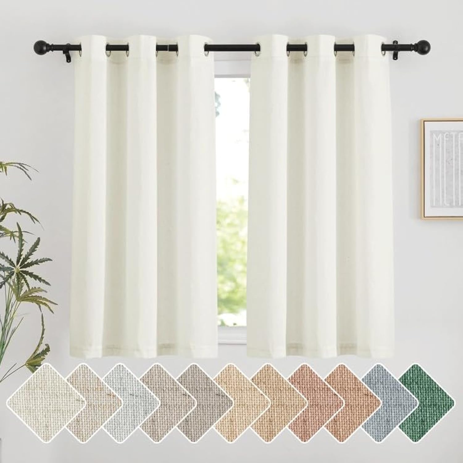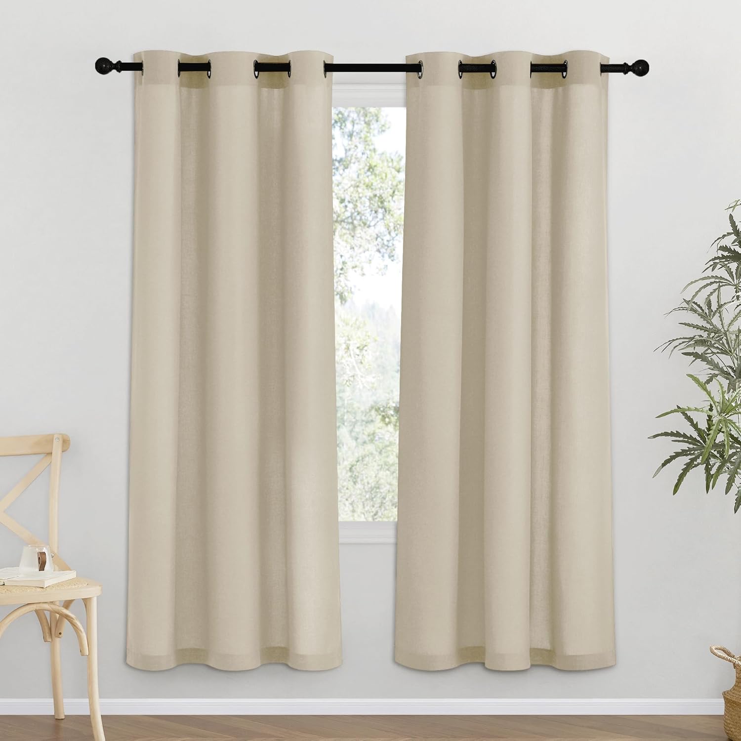 Do you want a curtain that can refresh your home decor with vintage and casual style? Then NICETOWN natural flax linen curtains will satisfy your need.NICE CHOICE:Made by hand and made of high-quality fabric makes the curtains are long-lasting. More size choice for you selects to match your windows. Each package includes 2 panels of linen-textured curtains. Each panel has 1.6" Grommets which can fit the most size rods in the market.The curtain material with 30% flax is retro and casual to make a quiet natural look to your windows and rooms. PERFORMANCE:Linen textured fabric is much thicker than normal sheer, which helps prevent the curious sights from outside and protect your total privacy but you still can enjoy the sunshine and have a happy time with your family.Reduce a part of strong sunlight and UV rays to protect your furniture and artwork. Formaldehyde-free, they can be used in the nursery, children's bedroom, living room, study room, and other places where you want privacy but still with a light filter.WASHING TIPS:1. These linen curtain is easy to care for and dirt-proof. But for the material is made from 30% linen, to keep the shape, you'd better dry-cleaning or wash the curtains without detergent. 2. Quick ironing or steam clean if it is necessary. Do not bleach.NOTE: Due to different screen displays, the color of the actual item may vary slightly from the above images.