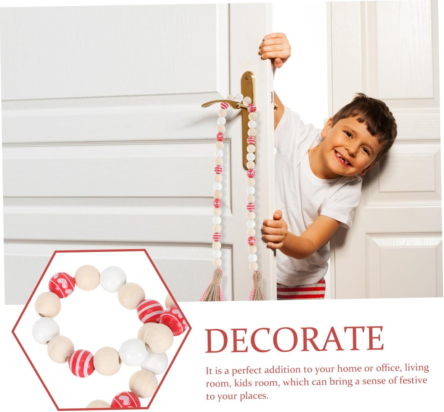 Package Include 12 x Decors Features -Size:88.00X2.50X1.50cm/34.58X0.98X0 Tassel Hanging Beads String. -Color:Assorted Color farmhouse wood beads -Material:Wood Wall Beaded Hanging Ornament -Made of with fine workmanship, it will decorate your home on your party Festival Wall Decor. -With creative and beautiful design, it is a suitable for friends and families ornaments. - for your lover, friends and your family, they will like the wooden beaded string decor letter a. -Its unique design will make your home look unique and charming, essential for your party Wooden Beaded Decoration. -Color and household coordination, integration into every detail of your life heart wooden beads ball.Goods Descriptionwood bead garland Made of good material, this hanging ornament is and decorative.Tassel Beaded Hanging Decor Fine workmanship ensures the practicality and durability.Valentine's Day Wood Bead Garland Featuring the creative wood bead modeling appearance design, it is a must-have scene layout decoration to add a atmosphere