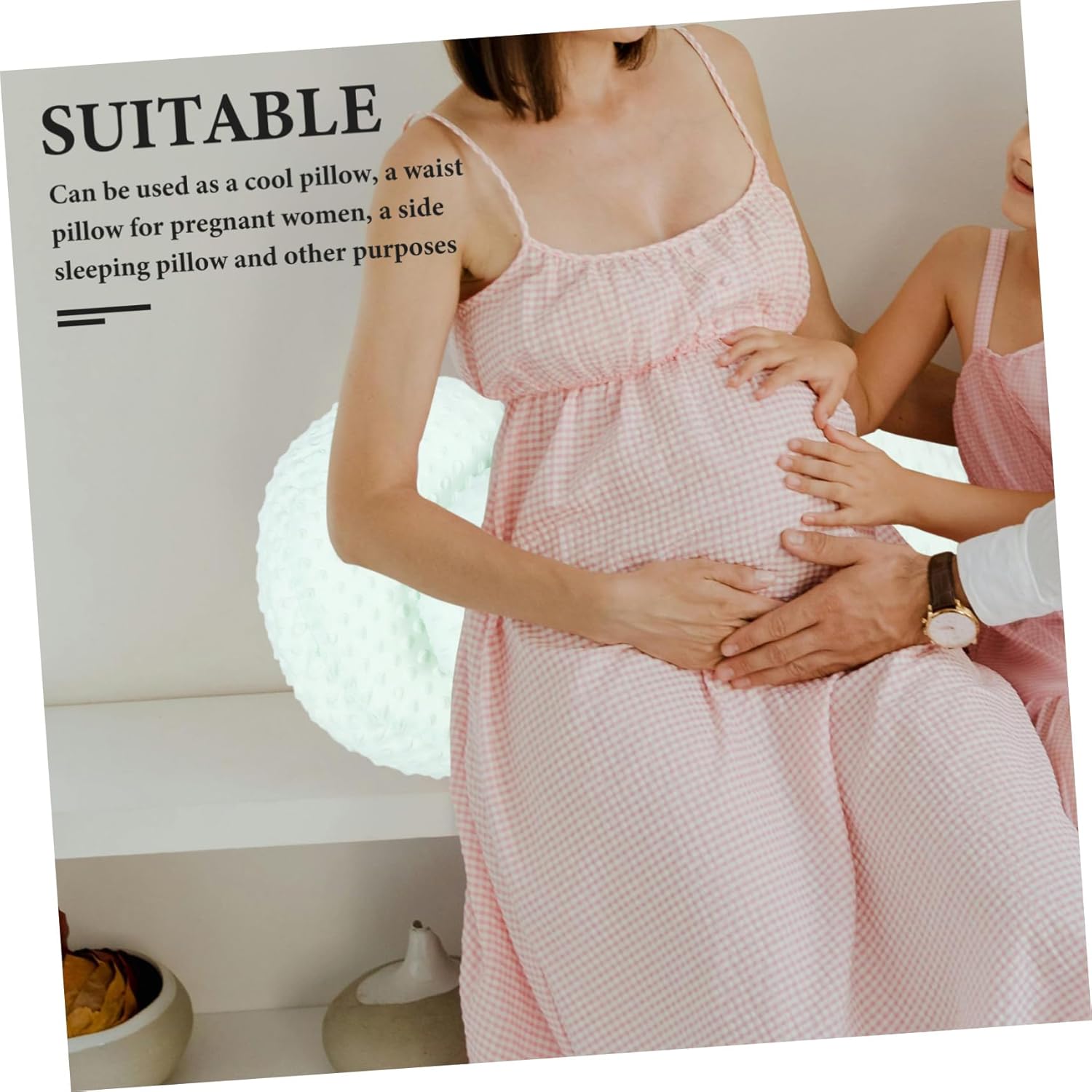 Package Include 1 x Pregnancy Pillow 1 x cushion Features - Size: 55.00X37.00X12.00cm/21.61X14.54X4.72in side sleeping waist pillow -Material:Fabric pregnancy belly pillow - Color: Light Green maternity breastfeeding pillow - It fits on pregnant woman's waist when lying on it. Supple and comfortable to use travel pregnancy pillow. - Versatile pillow that can be used during pregnancy and so on, providing comfort supple pillow. - Conforms to the ergonomic design and fits the body curve, reducing waist burden, waist, abdomen, and leg discomfort. pregnancy lumbar cushion - Has fine stitches and workmanship. The breathable pillow makes you feel comfortable all night. breastfeeding pillow - It can be given to your wife as a present to let her feel your care and concern for her pregnant pillows.Goods Descriptionsmall pregnancy pillows for sleeping The ergonomically designed pillow can support your waist fully.pregnant pillows for sleeping want to protect your lumbar? want a comfortable pillow designed for pregnant women? , ! Our pregnancy pillow must meet your needs, it's made of material, and it's comfortable to use