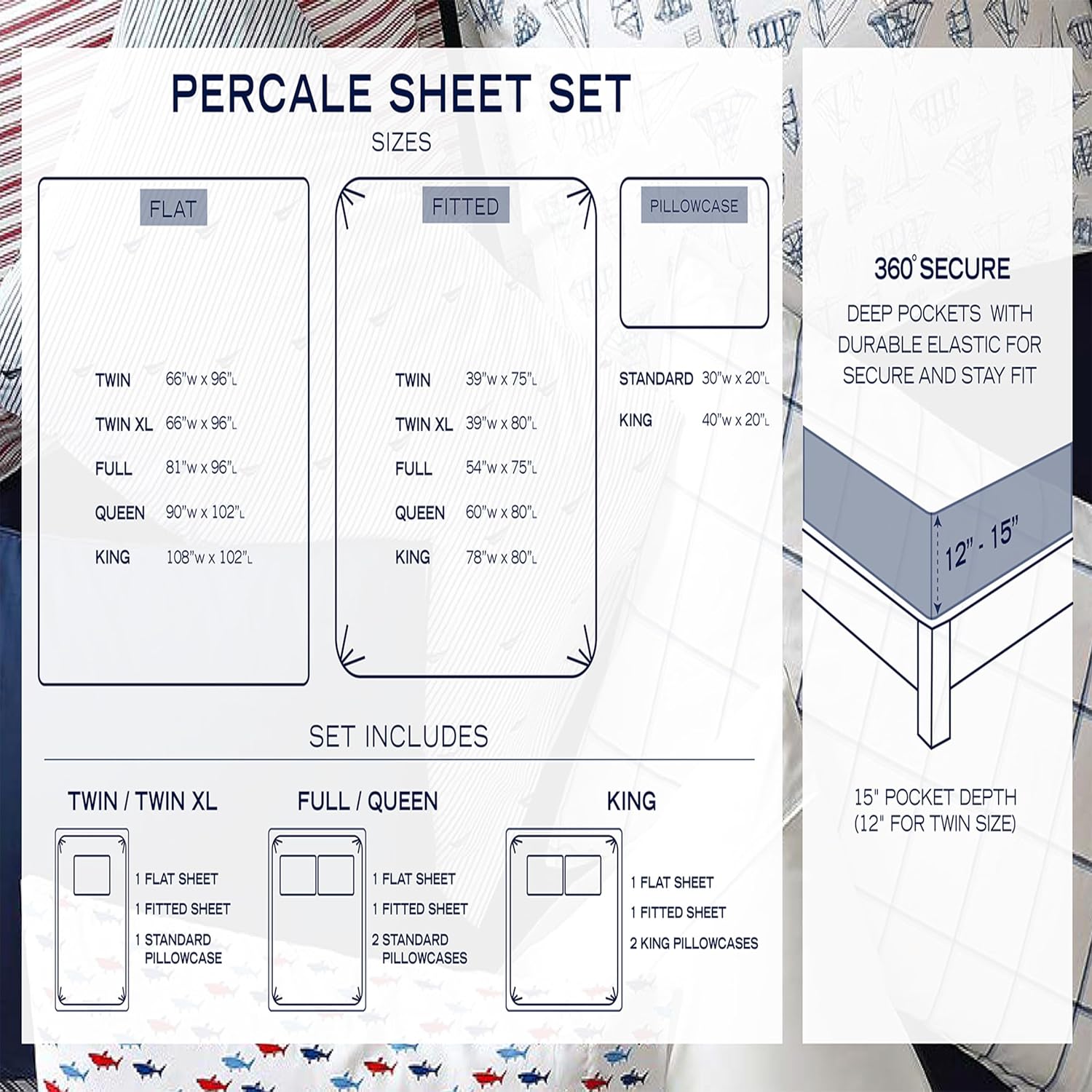 | Included Components | One flat sheet, one fitted sheet and two king pillowcases |
