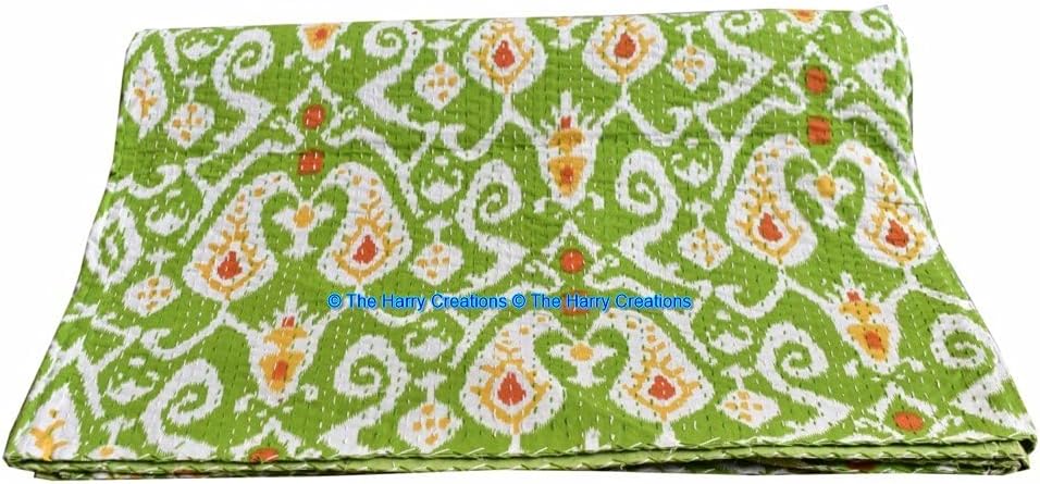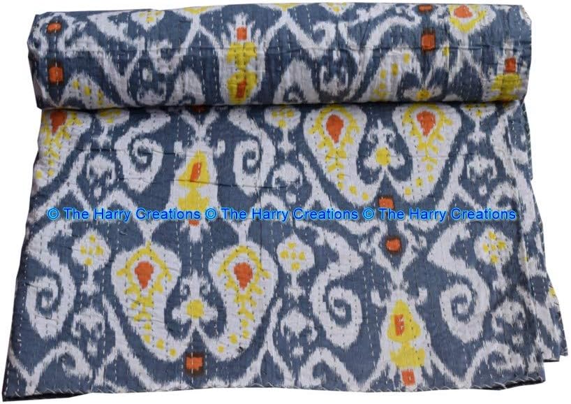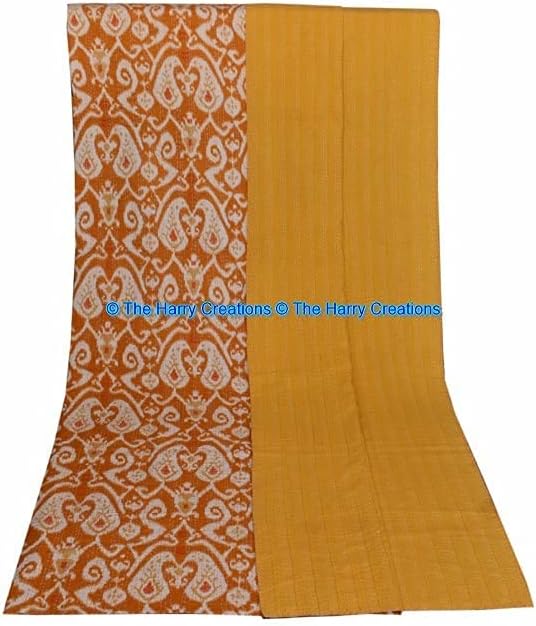 Made with 100% cotton and natural vegetable colors. This piece of art is completely hand stitched by Women artisan in Rajasthan, India. It can make any room alive with its vivid colors, stunning print and embroidery, made using traditional and famous kantha hand embroidery method. Made from two thin layer of cotton fabric make this piece of art irresistible and also very comfortable. Adding to its style, this kantha quilt is reversible and both sides can be used. Kantha is still the most popular form of embroidery practiced by rural women. Typically use old saris and cloth and layer them with kantha stitch to make a light blanket, throw or bedspread. This cotton lightweight "Quilts" with a beautiful and colorful hand block Ajrakdesign can be used as: 1. Bedspread, Bedding Throw, Blanket or Quilt 2. A Summer Bed Cover. 3. A Fabulous Picnic Rug 4. Nice Bedroom Quilt. Size- 108*108 Inches/90*108 Inches/60*90 Inches which depends upon your size from variation