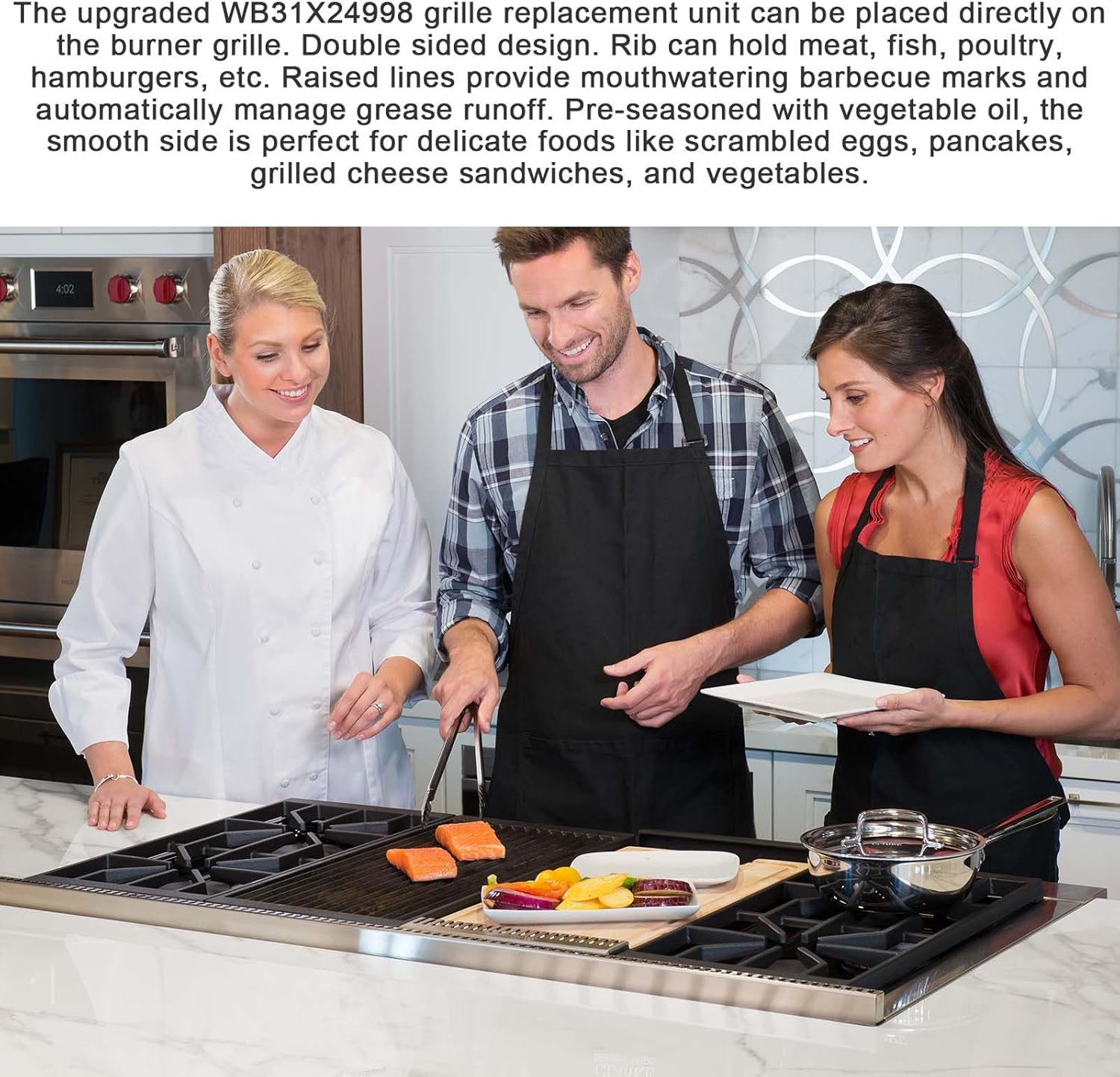 【Product MATERIAL】 The double sided ge griddle made of matte enamel cast iron that heavier and more durable to ensure long-life lasting. The cast iron square griddle with unique flat surface that provides space for placing items, and well-designed about reversible cook surface that you can use two sides.