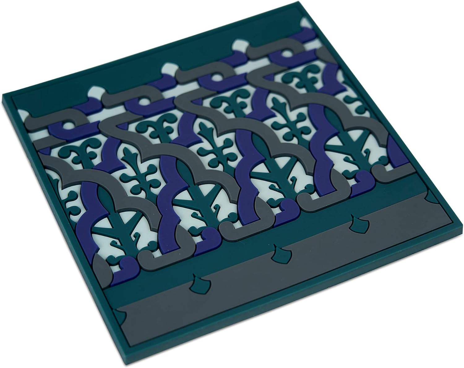 Dive into a beautiful sea of color with the Mosaic Blue trivet by Images d'Orient. This trivet not only makes for a fabulous place to set delicious hot meals, but represents true, appealing decor in your home as well. Feel the presence of traditional Mediterranean colors as they work together for a modern look. Trivet measures 7-Inch square. Made from quality silicone using an intricate multi-color injection process, ensuring long-term use. Waterproof and heat resistant up to 500-degree F or 250-degree C. Handwash with warm soapy water. Colors will not fade. Explore all of the lovely products and color palettes by Images d'Orient-the charm of the Mediterranean.