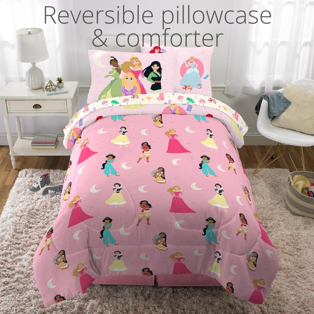 Add some "Snowflake Magic" to her bedroom with this animated Frozen 2 bedding set. Young fans of Anna and Elsa will love cuddling up with their favorite Disney sisters as they dream of fun and adventure. This high-quality microfiber set includes a comforter, fitted sheet, flat sheet, pillowcase(s), and pillow sham(s). One side of the reversible comforter features a soft purple background with bold images of Elsa and Anna while the other features Elsa and Olaf on a soft blue background. Coordinating colors and imagery on the sheets, pillowcase(s), and pillow sham(s) help create a cohesive look to complete any Frozen 2 fan’s bedroom. The new animated Disney feature Frozen 2 takes Elsa and Anna fans on another adventure with the same positive messages of love and sisterhood. Now you can bring the magic home by creating a fun Frozen themed bedroom with this high-quality bedding set. Set is available in a twin size 5 piece bedding set or a full size 7 piece bedding set.