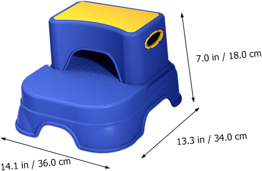 Package List 1 x foot stool Features - Size: 36.00X34.00X18.00cm/14.15X13.36X7.07in Dual-layer Footstool - Color: Blue, yellow Non-slip Step Stool - Material: PP, TPE Training Step Stool - The of the stool are equipped with non-slip silicone pads, which are stable and will not scratch the floor Safety Stool. - PP material is sturdy and , good toughness, not easy to break, thickened material is stable and load-bearing, not easy to be stepped on Safety Stool. - The bottom arc handle is convenient to take and move Friction Foot Stool. - It is round and smooth without burrs, and the workmanship is meticulous to protect the from injury Non-slip Stool. - In addition to being a step stool, it is also suitable as a doorway stool for changing shoes and a daily footstool Bathroom Footstool.Goods DescriptionToilet Safety Stool The non-slip stool can ensure the safety of .Non-slip Stool The workmanship is fine, the color is beautiful, and the appearance is simple.Training Step Stool Are you looking and reliable step stool for ? want to make your safer and more convenient when the toilet? If so, then this product can be a for you