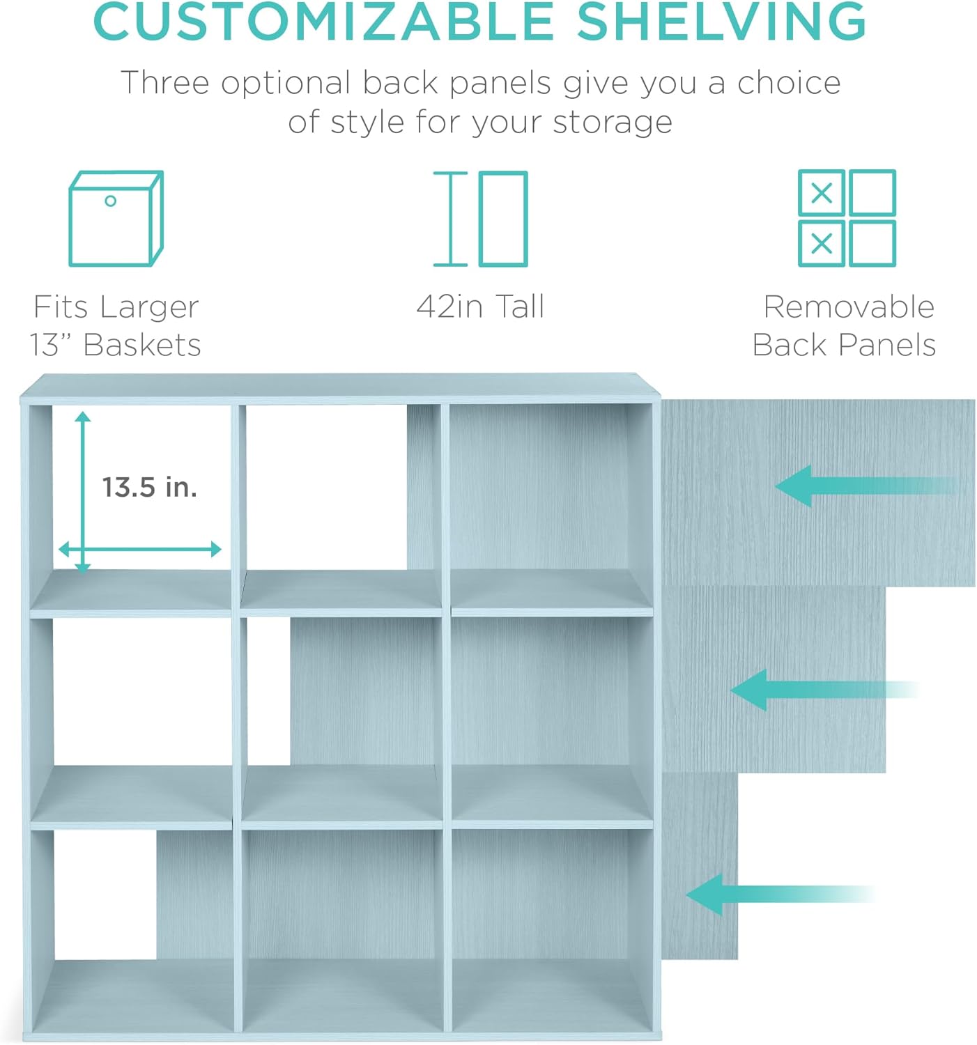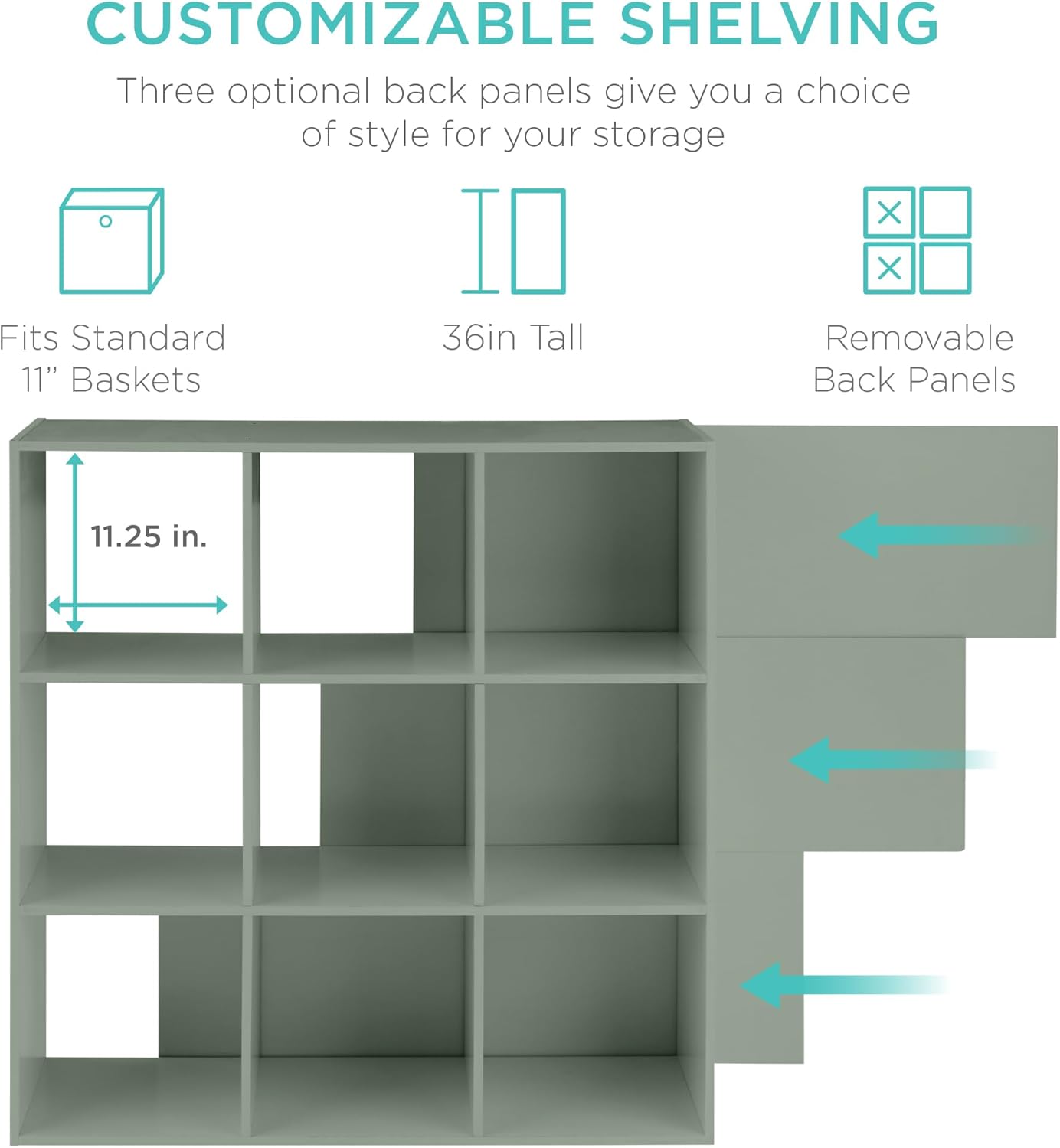 | Model Name | 8-Cube Bookshelf, 11in Storage Display w/ Removable Panels, Customizable |