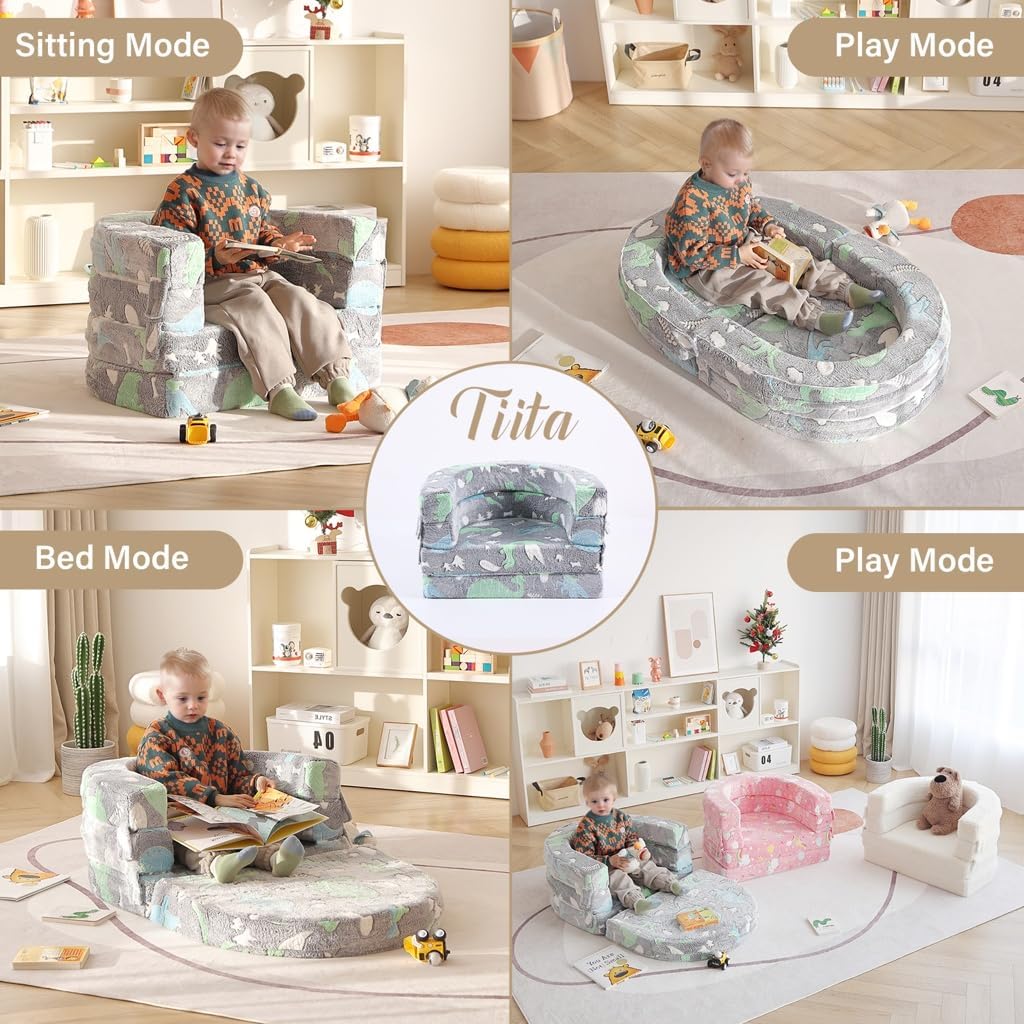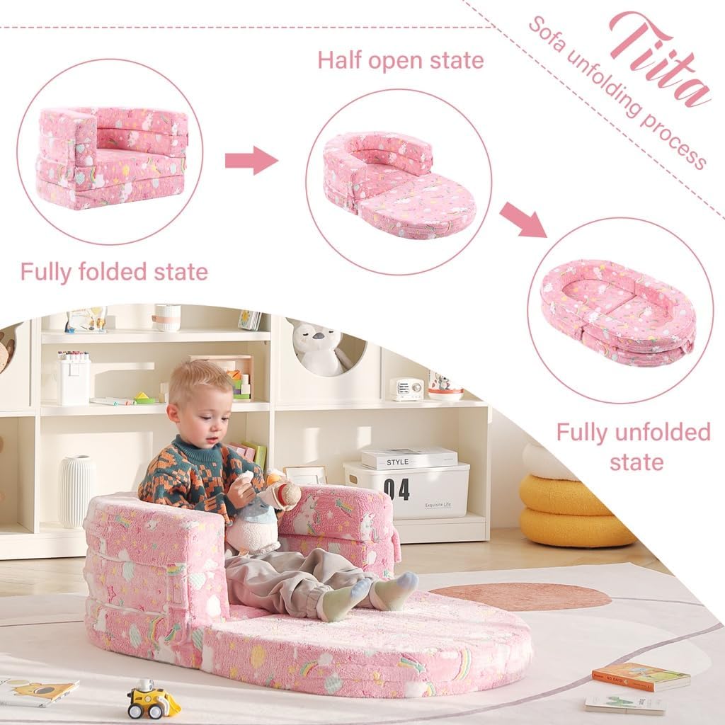 This fluffy toddler chair offer the flexibility to adapt to different situations. With a simple fold, they can effortlessly convert between a traditional sofa and a lounger, accommodating various seating preferences or transforming playtime into relaxation time. Toddler armchair cover is made of safe & skin-friendly durable cotton, we've utilized upgraded high-density sponge to enhance the durability and reliability of the kids chair, ensuring optimal protection for your child.